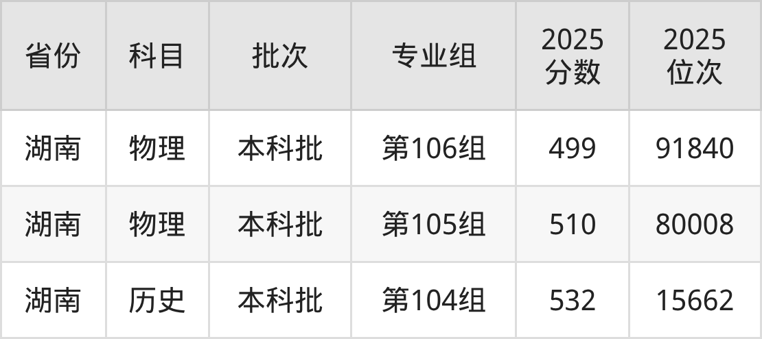 湖南警察学院第105组:2025年投档录取最低分为510分,录取最低位次为80008名。