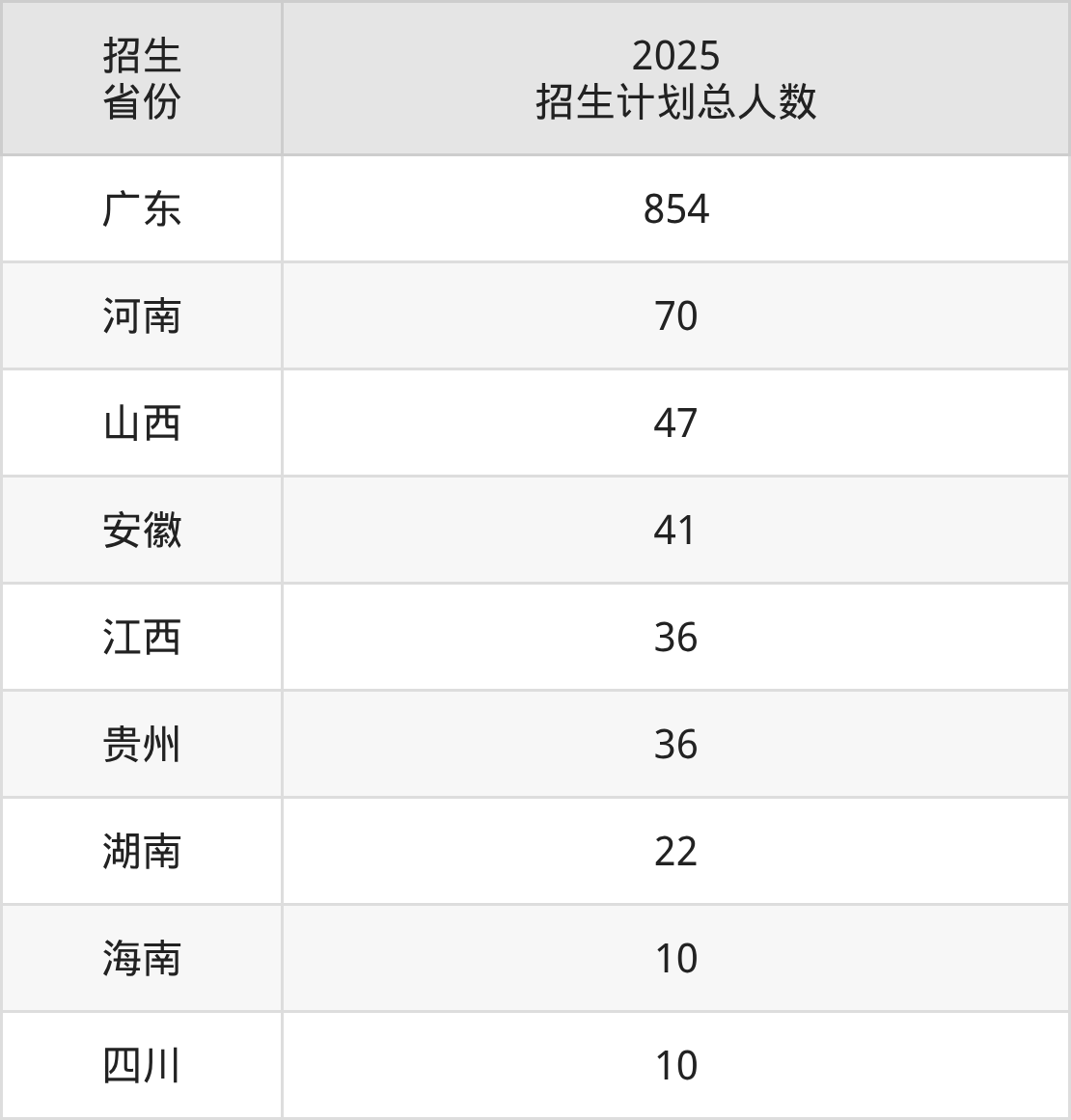 2025年中山职业技术学院面向全国9个省市开展专科招生;招生专业共27个,招生人数共1126人。2025年在广东省招生计划总人数是854人,其中,中山职业技术学院在广东省招生人数最多的是物联网应用技术。中山职业技术学院在各省具体招生人数情况如下表。