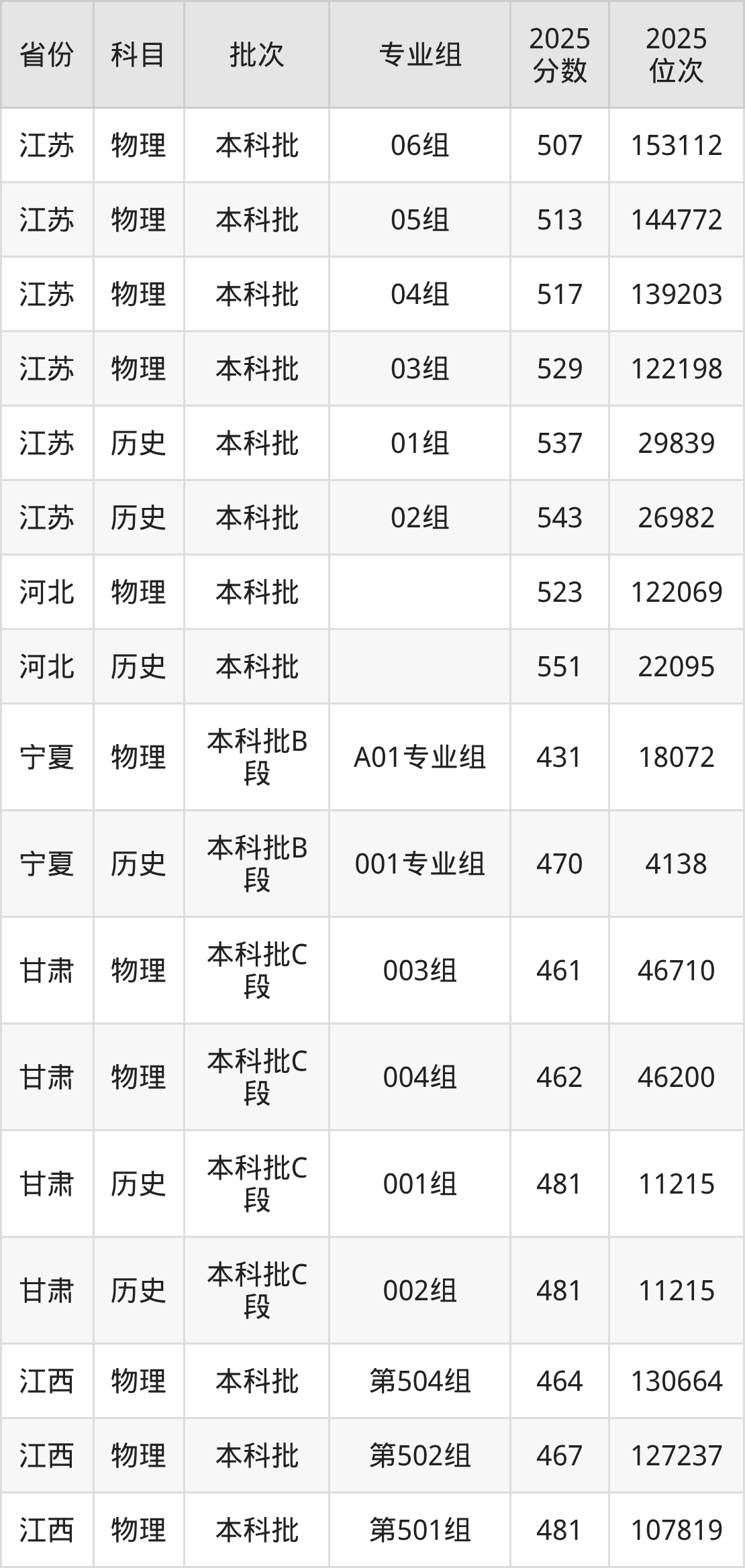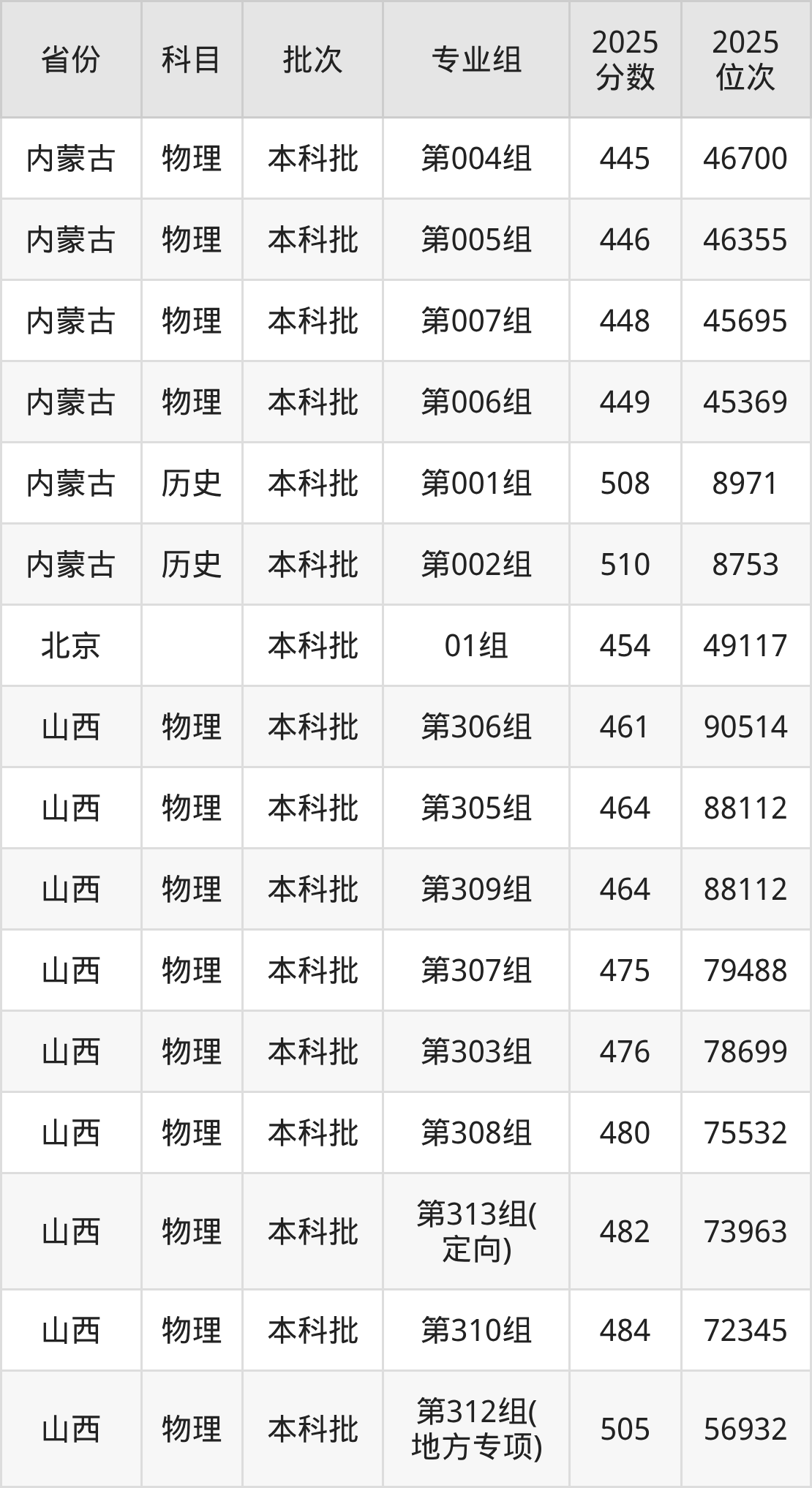 山西农业大学第001组:2025年投档录取最低分为508分,录取最低位次为8971名。