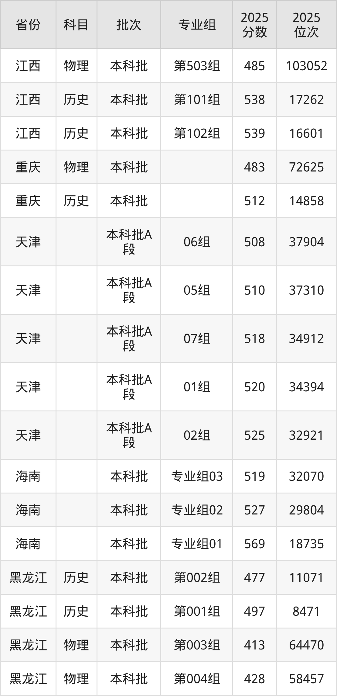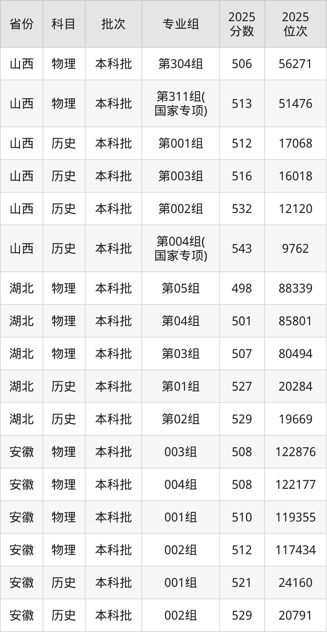 山西农业大学第004组(国家专项计划):2025年投档录取最低分为543分,录取最低位次为9762名。