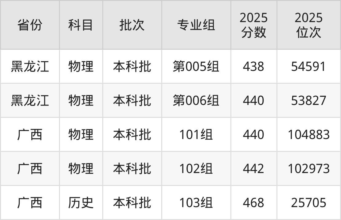 山西农业大学第006组:2025年投档录取最低分为440分,录取最低位次为53827名。