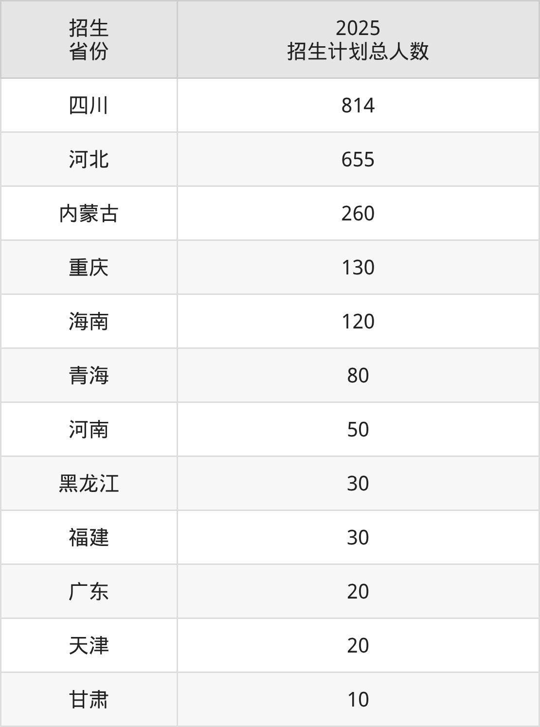 2025年四川应用技术职业学院面向全国12个省市开展专科招生;招生专业共23个,招生人数共2219人。2025年在四川省招生计划总人数是814人,其中,四川应用技术职业学院在四川省招生人数最多的是应急救援技术。四川应用技术职业学院在各省具体招生人数情况如下表。