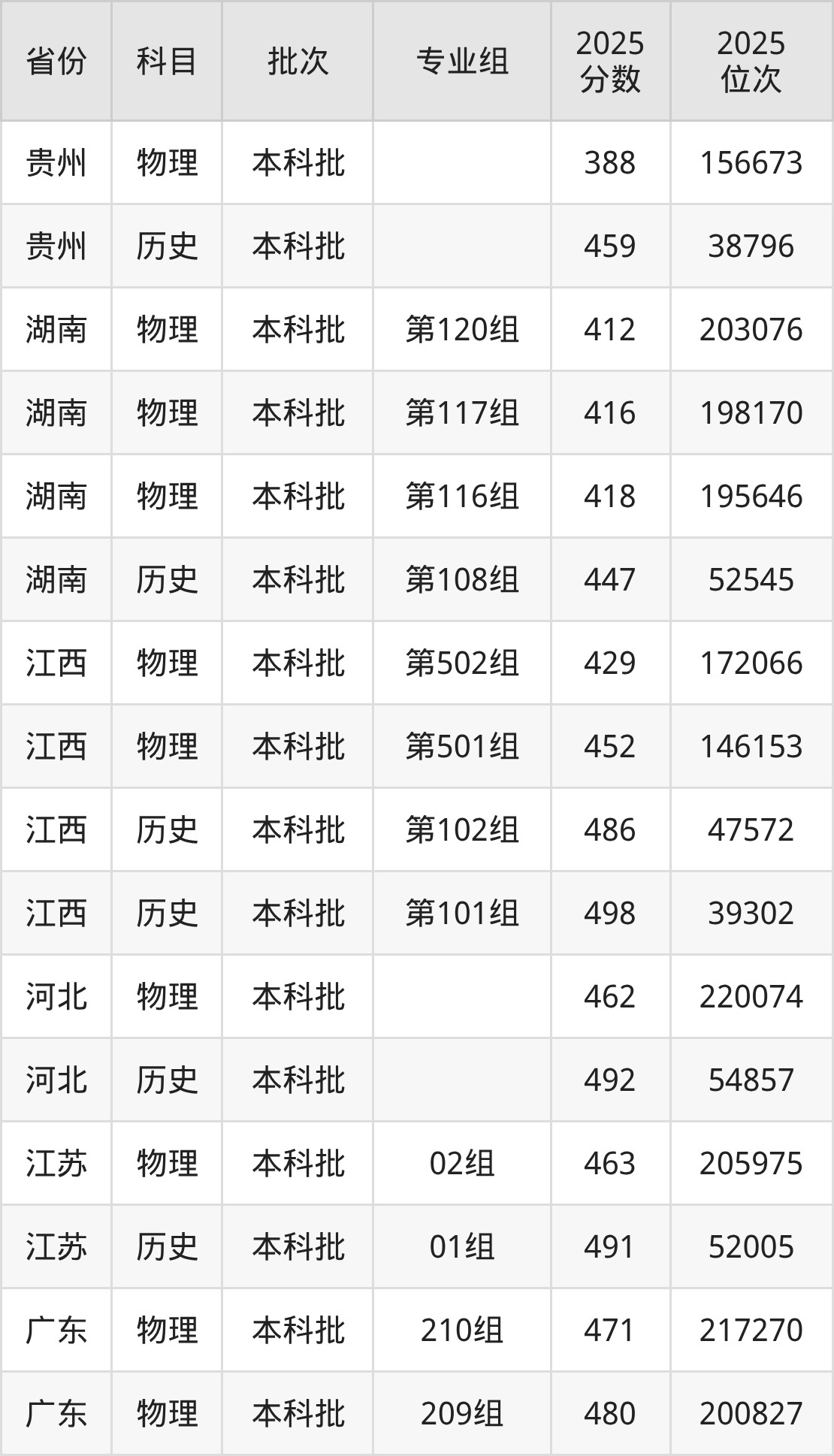 普通类本科物理类最低388分,本科历史类最低459分