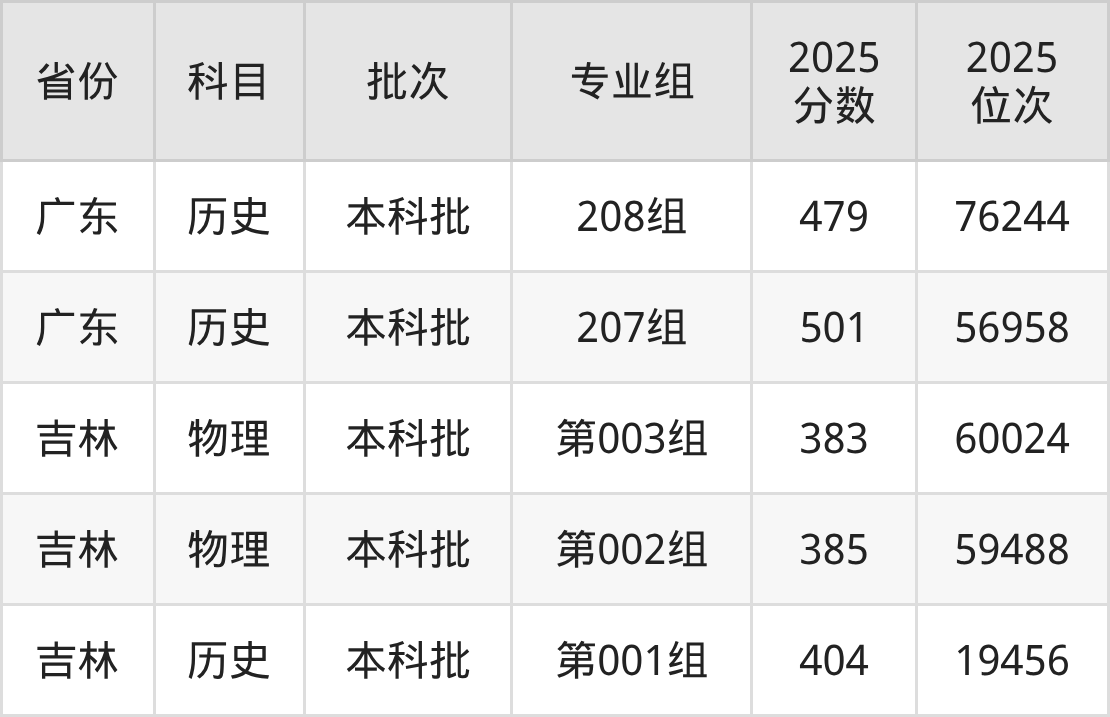 张家界学院第003组:2025年投档录取最低分为383分,录取最低位次为60024名。