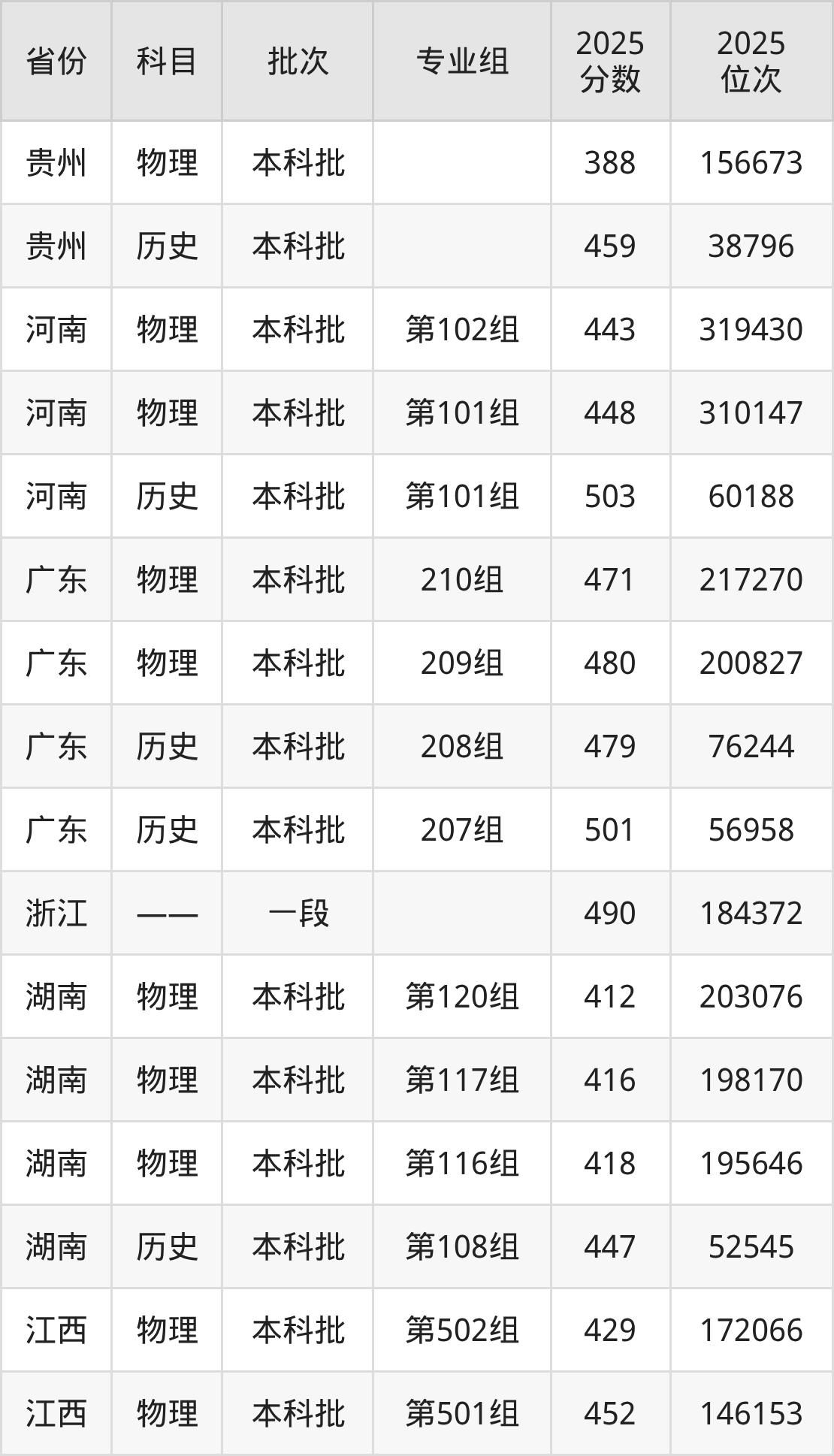 2025年投档录取最低分为388分,录取最低位次为156673名。