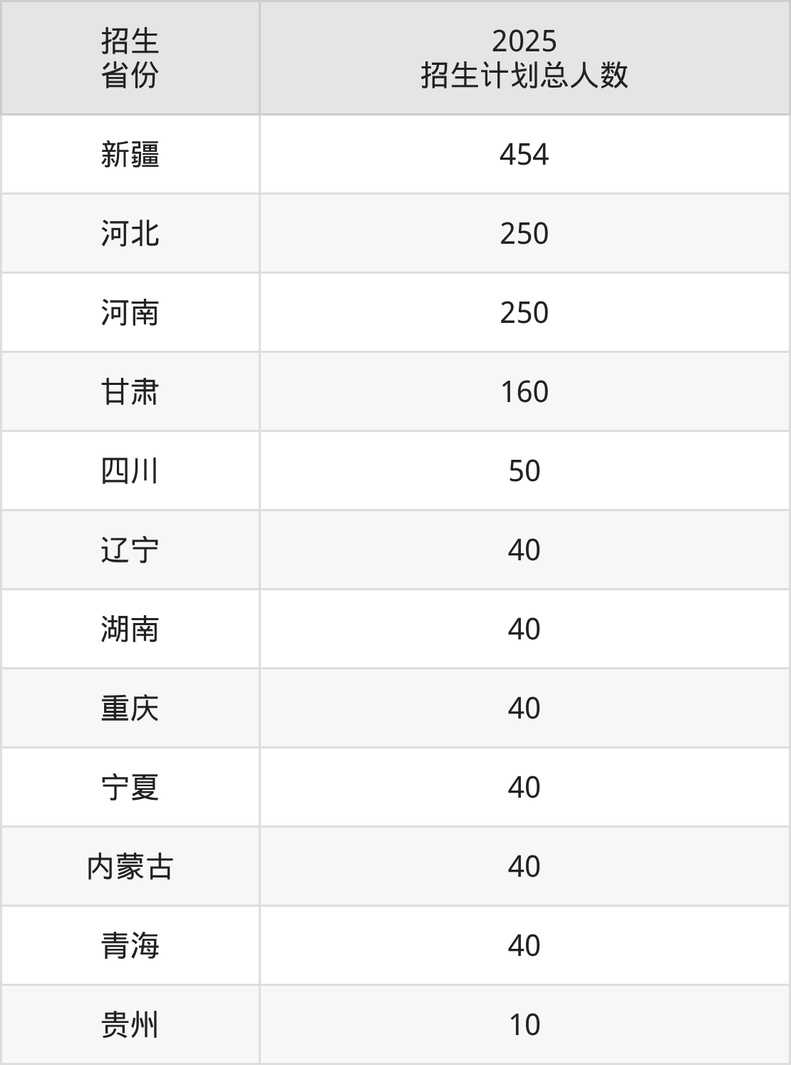 2025年石河子工程职业技术学院面向全国12个省市开展专科招生;招生专业共31个,招生人数共1414人。2025年在新疆维吾尔自治区招生计划总人数是454人,其中,石河子工程职业技术学院在新疆维吾尔自治区招生人数最多的是应用化工技术。石河子工程职业技术学院在各省具体招生人数情况如下表。