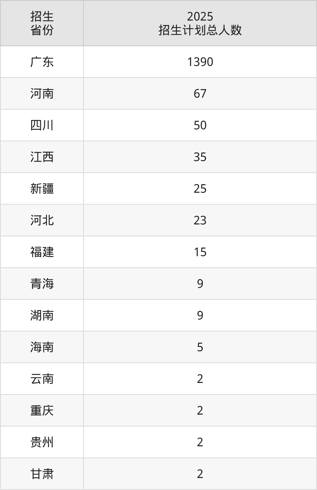2025年茂名职业技术学院面向全国14个省市开展专科招生;招生专业共46个,招生人数共1636人。2025年在广东省招生计划总人数是1390人,其中,茂名职业技术学院在广东省招生人数最多的是传播与策划。茂名职业技术学院在各省具体招生人数情况如下表。