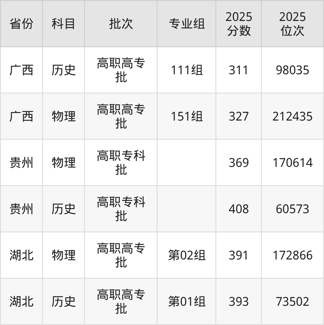 茂名职业技术学院第01组:2025年投档录取最低分为393分,录取最低位次为73502名。
