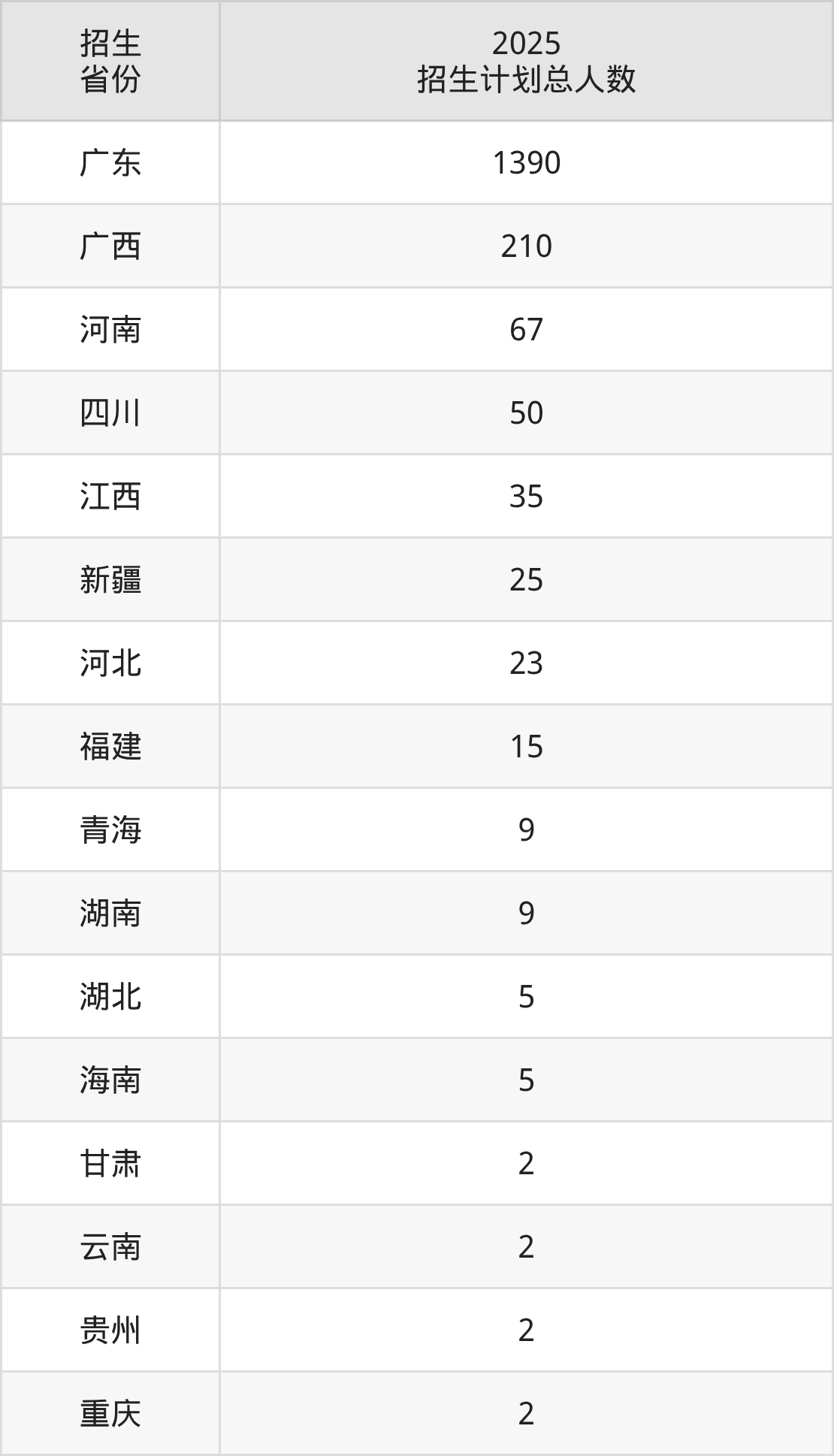 2025年茂名职业技术学院面向全国16个省市开展专科招生;招生专业共46个,招生人数共1851人。2025年在广东省招生计划总人数是1390人,其中,茂名职业技术学院在广东省招生人数最多的是传播与策划。茂名职业技术学院在各省具体招生人数情况如下表。