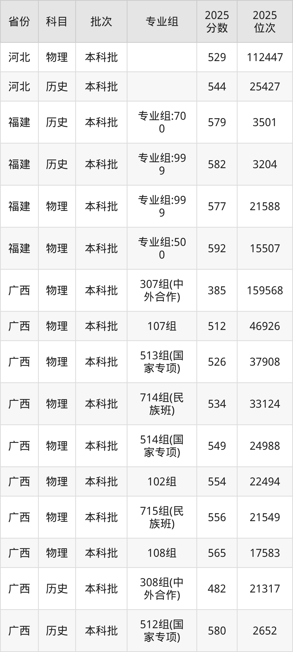 2025年投档录取最低分为579分,录取最低位次为3241名。