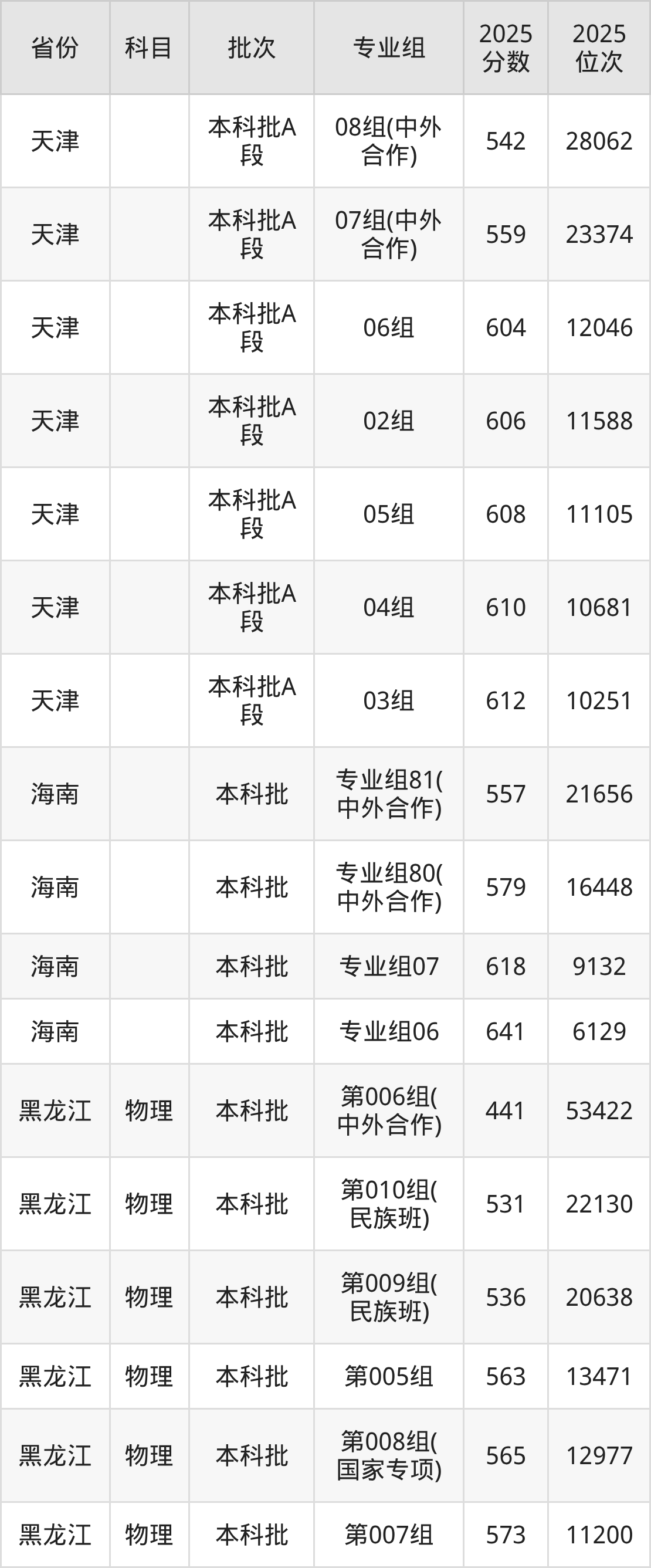 2025年投档录取最低分为559分,录取最低位次为19511名。
