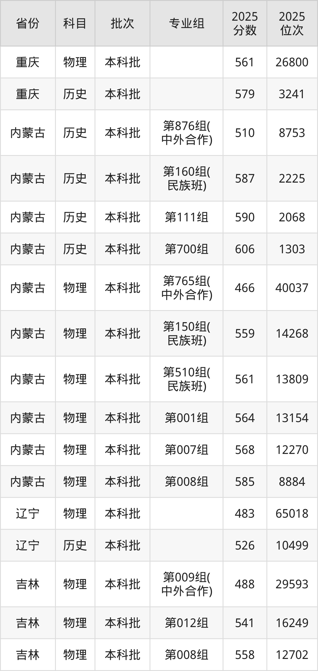 2025年投档录取最低分为561分,录取最低位次为26800名。
