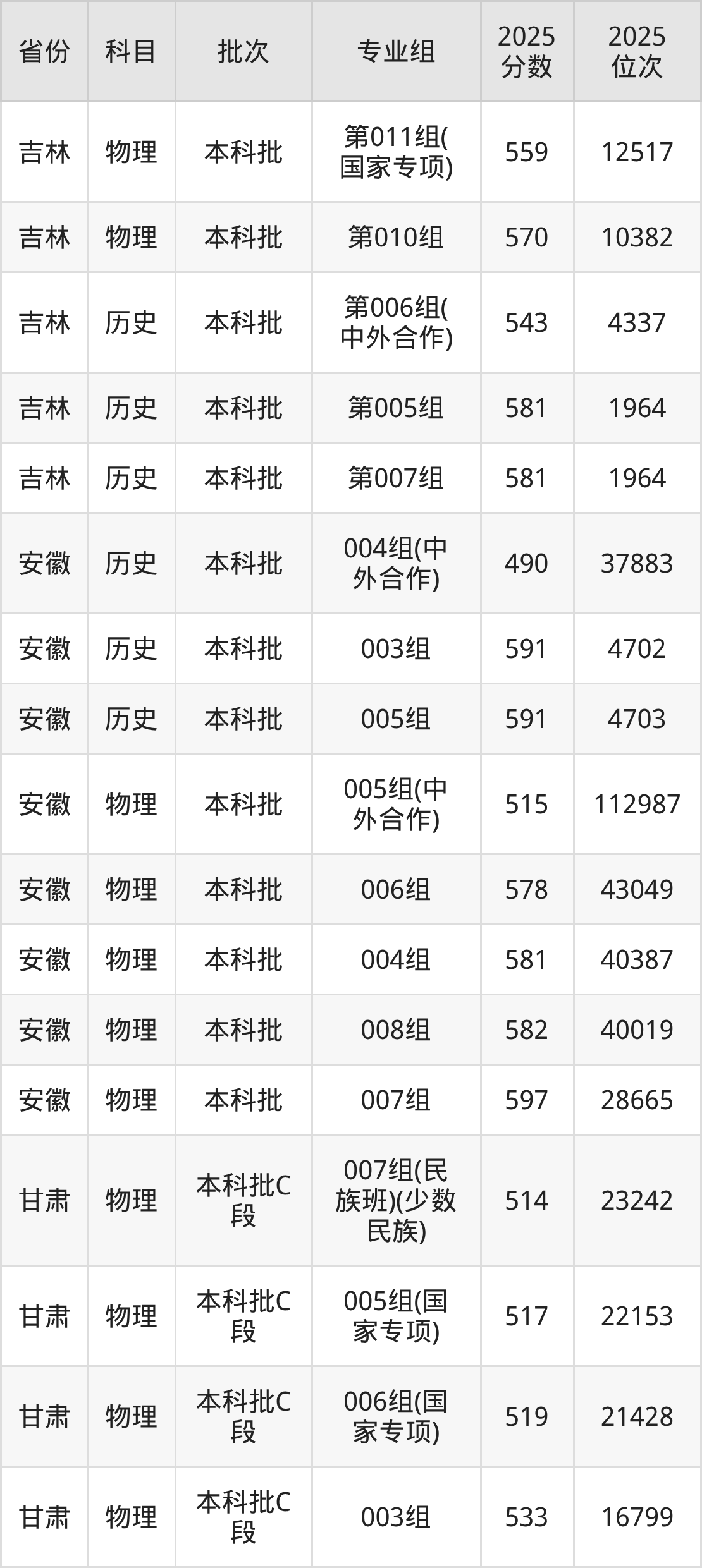 北京语言大学005专业组(国家专项计划):2025年投档录取最低分为517分,录取最低位次为22153名。