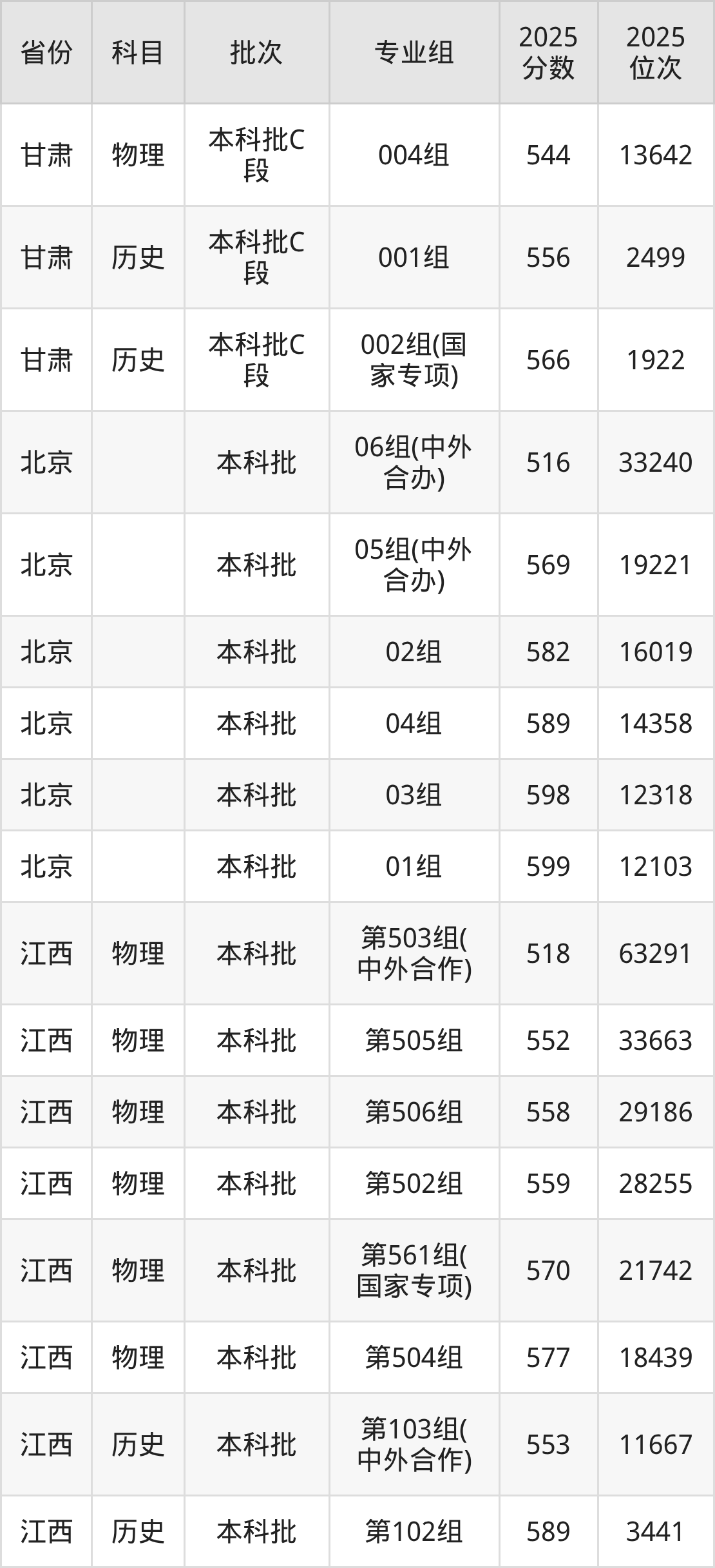 北京语言大学004组(中外合作办学):2025年投档录取最低分为490分,录取最低位次为37883名。