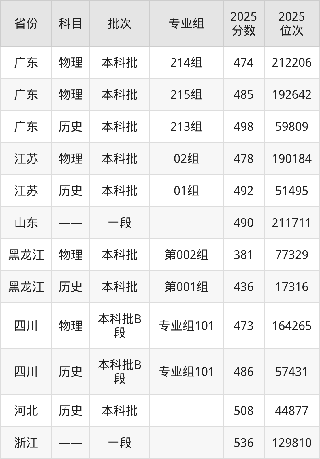 2025年投档录取最低分为459分,录取最低位次为38542名。