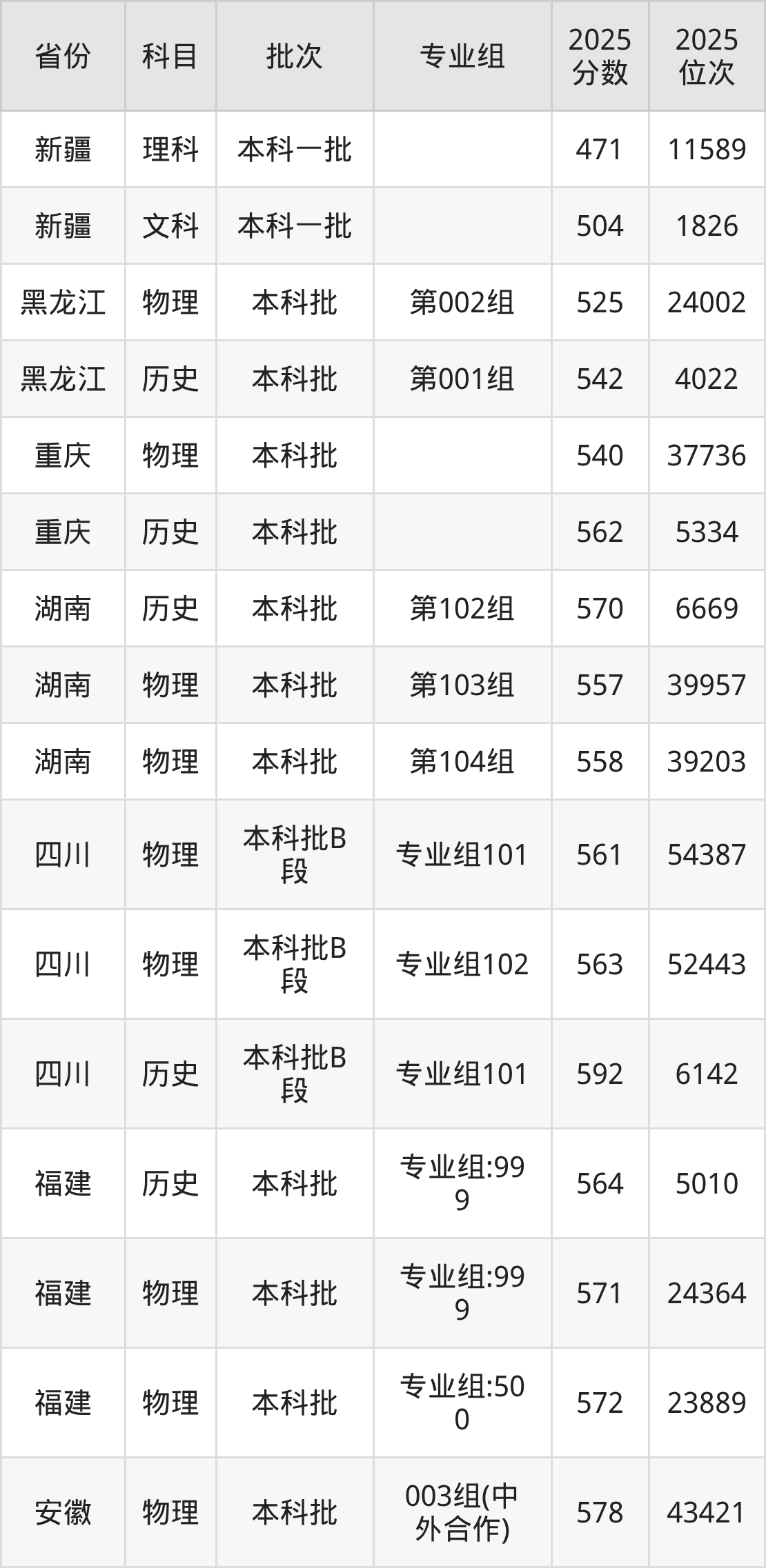 普通类本科物理类最低557分,本科历史类最低570分