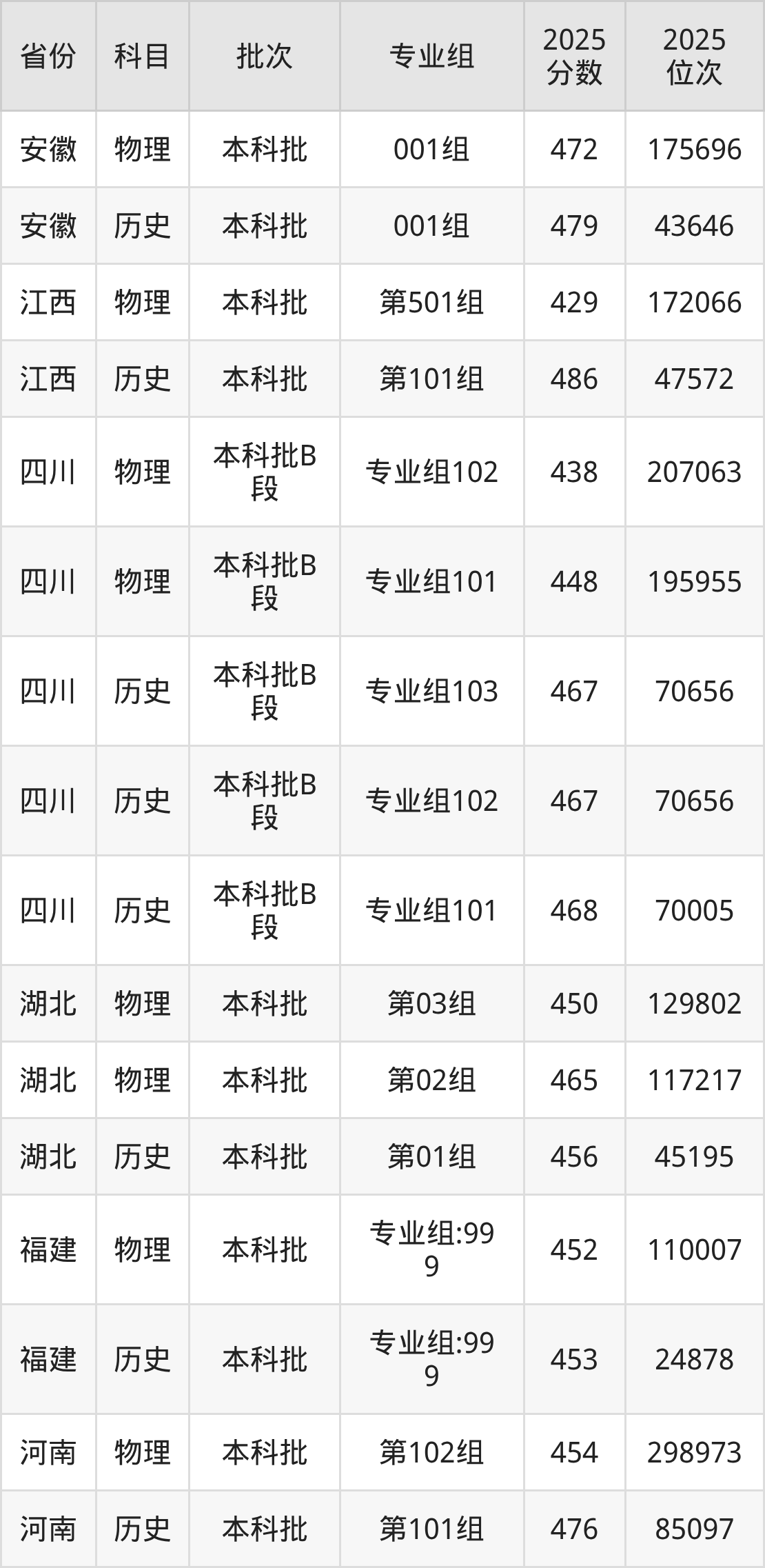 2025年江西软件职业技术大学全国录取分数线是429分到486分,录取最低在江西物理类(第501组)、录取最高在江西历史类(第101组)。各省各专业组最低分具有差异,详情如下: