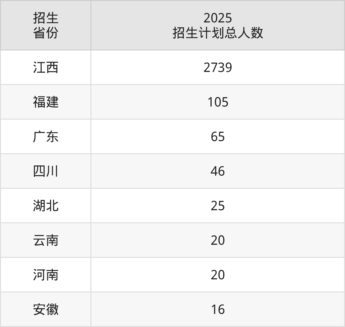 2025年江西软件职业技术大学面向全国8个省市开展本科招生;招生专业共21个,招生人数共3036人。2025年在江西省招生计划总人数是2739人,其中,江西软件职业技术大学在江西省招生人数最多的是软件工程技术。江西软件职业技术大学在各省具体招生人数情况如下表。