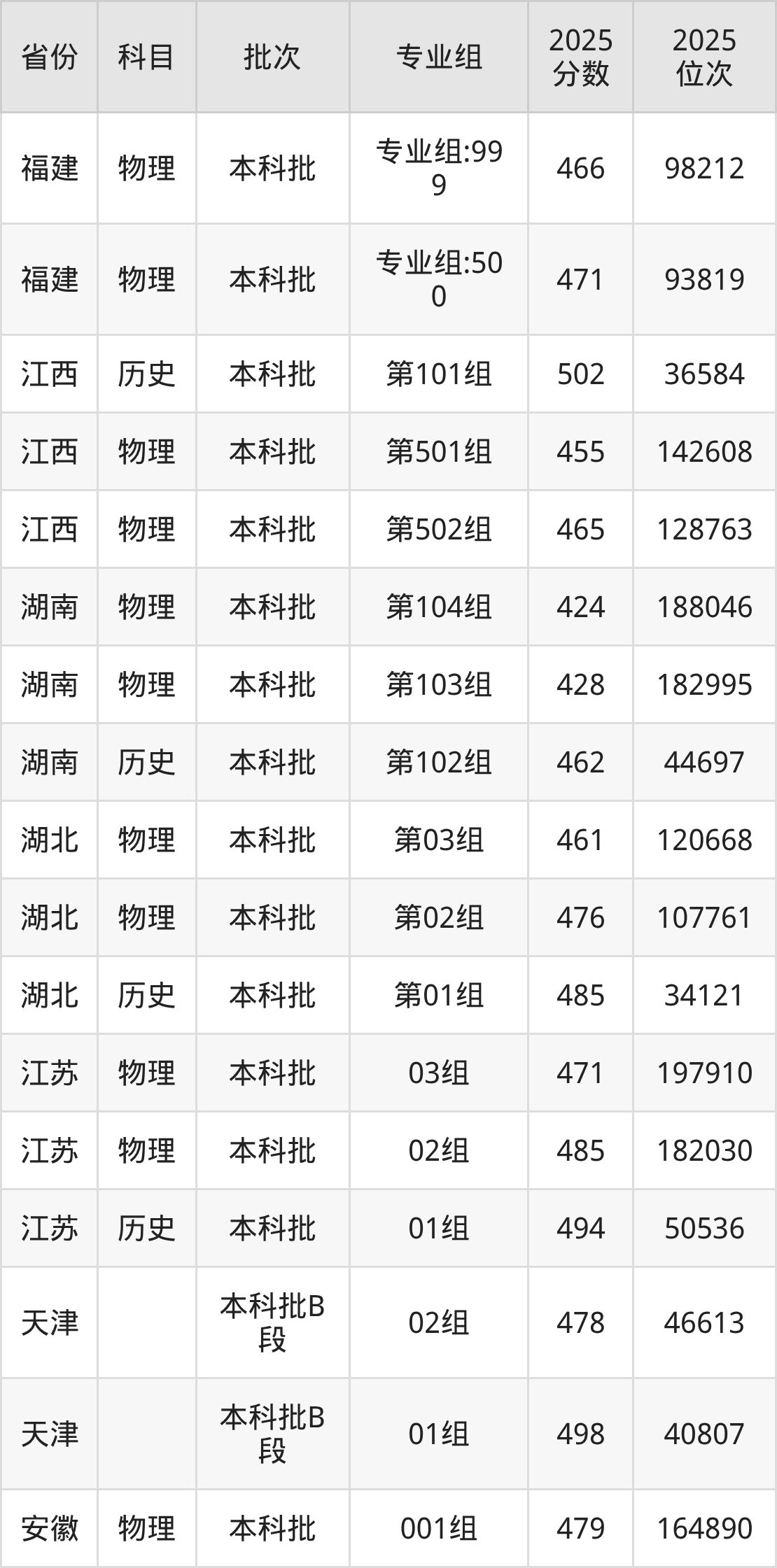 湘潭理工学院001组:2025年投档录取最低分为479分,录取最低位次为164890名。