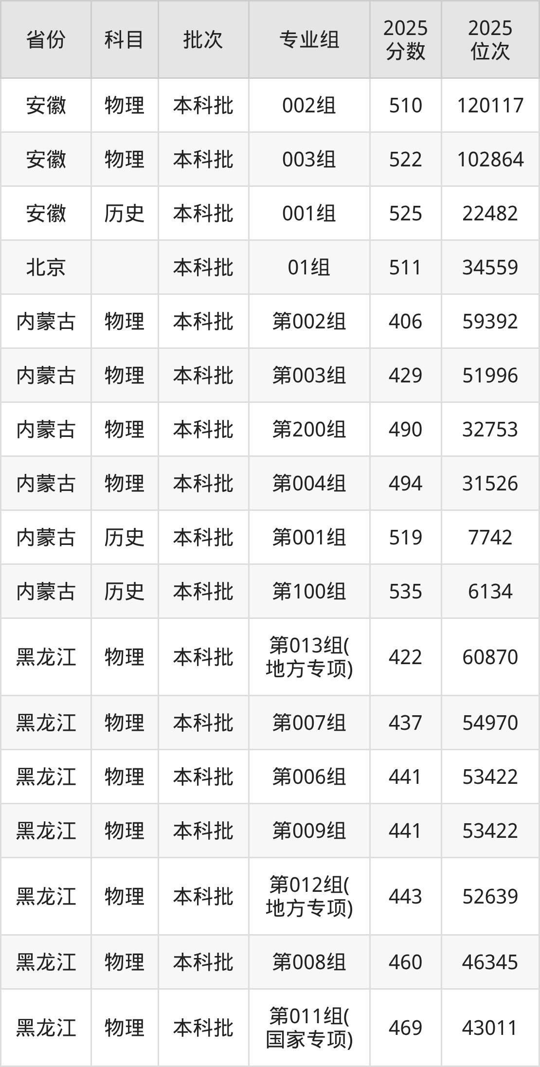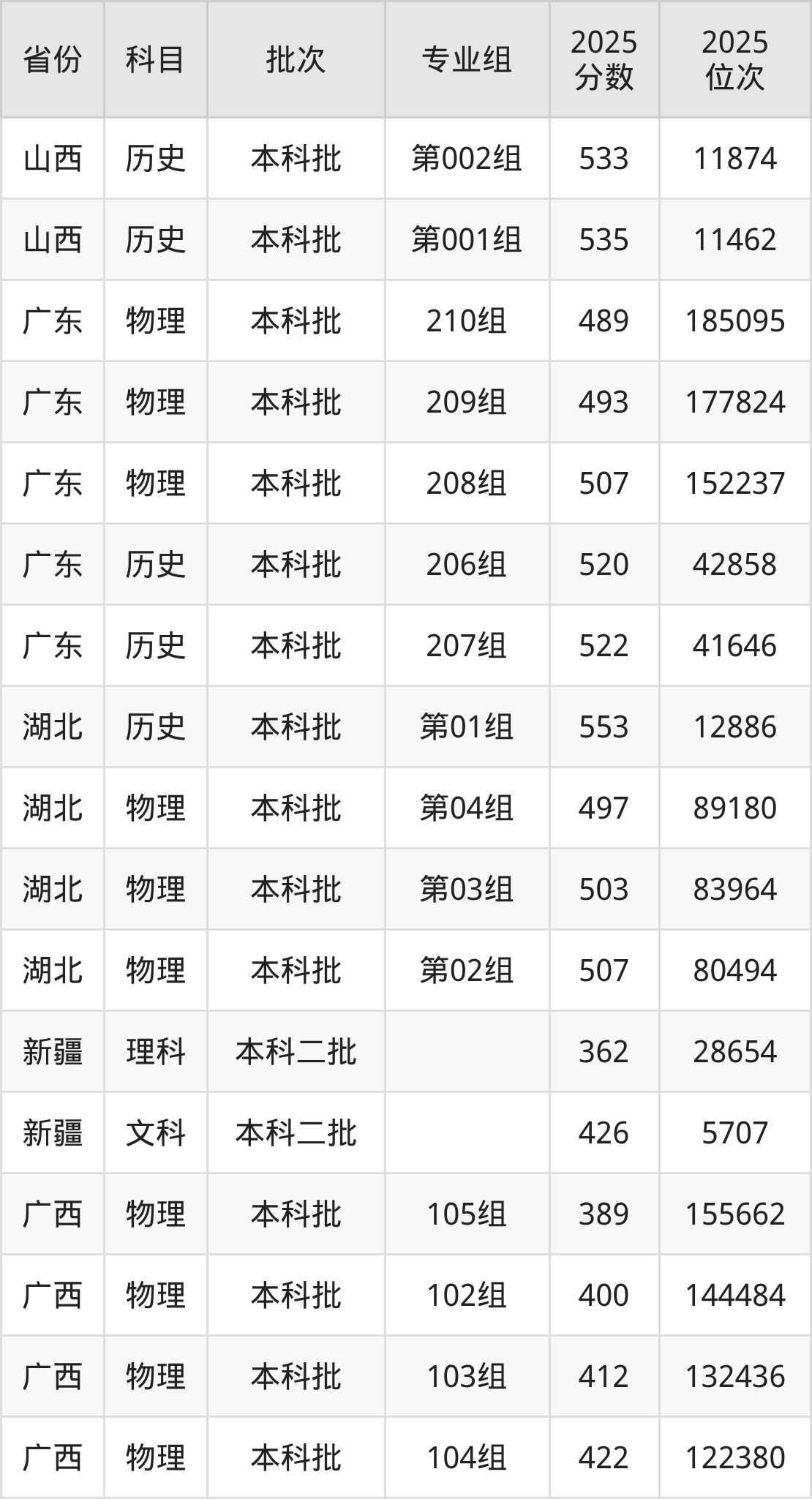 哈尔滨商业大学002组:2025年投档录取最低分为510分,录取最低位次为120117名。