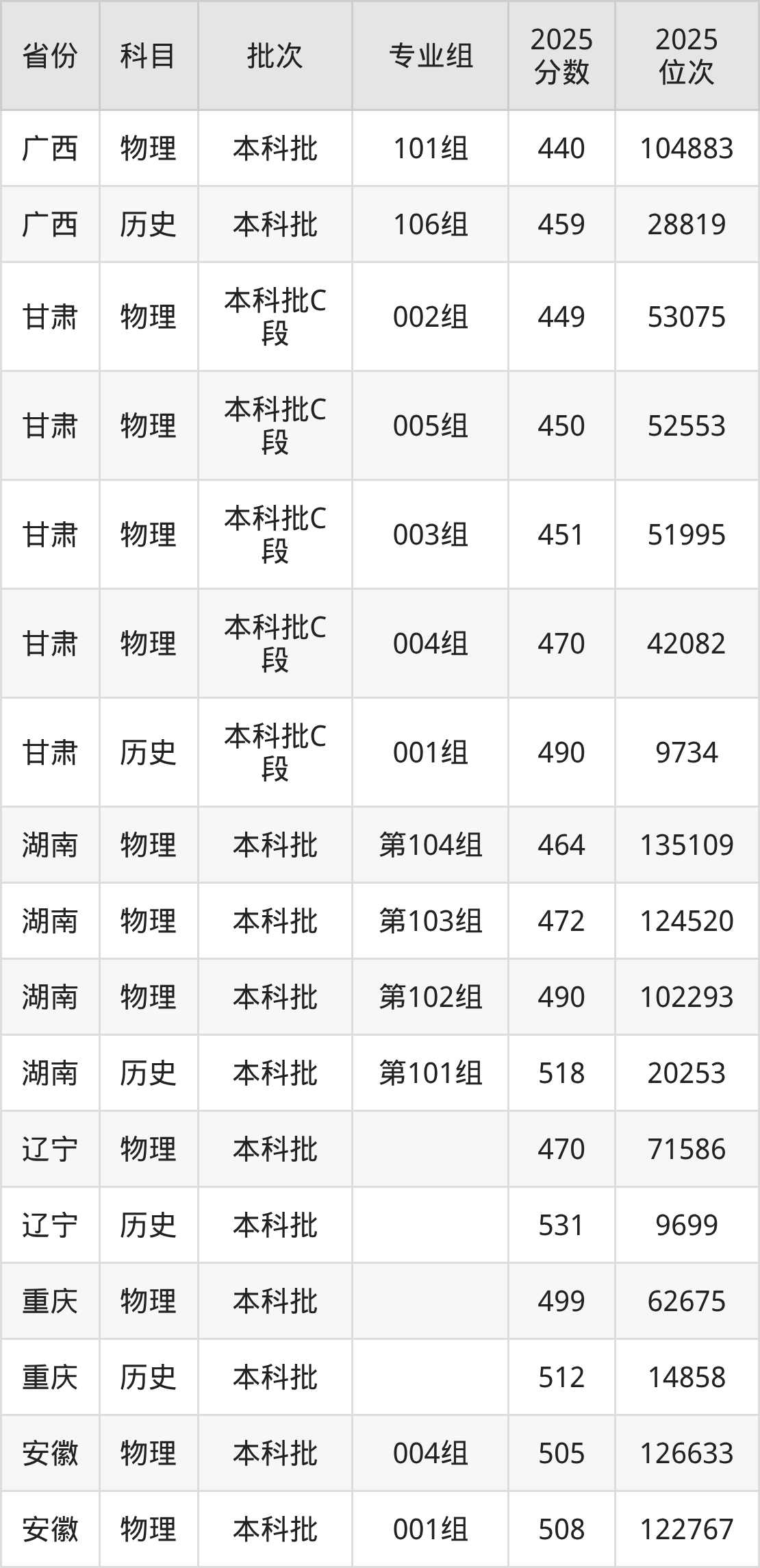 2025年投档录取最低分为512分,录取最低位次为14858名。