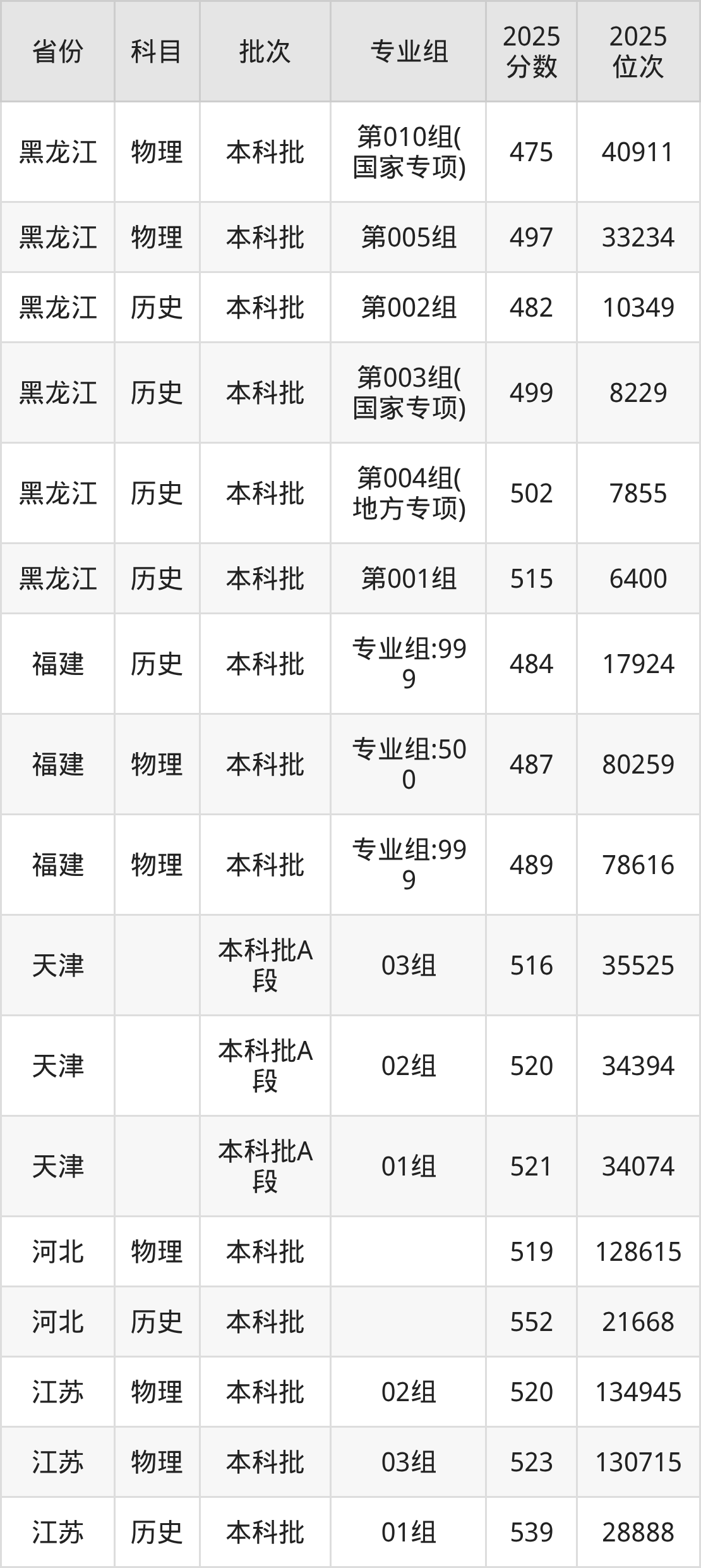 哈尔滨商业大学第010组(国家专项):2025年投档录取最低分为475分,录取最低位次为40911名。
