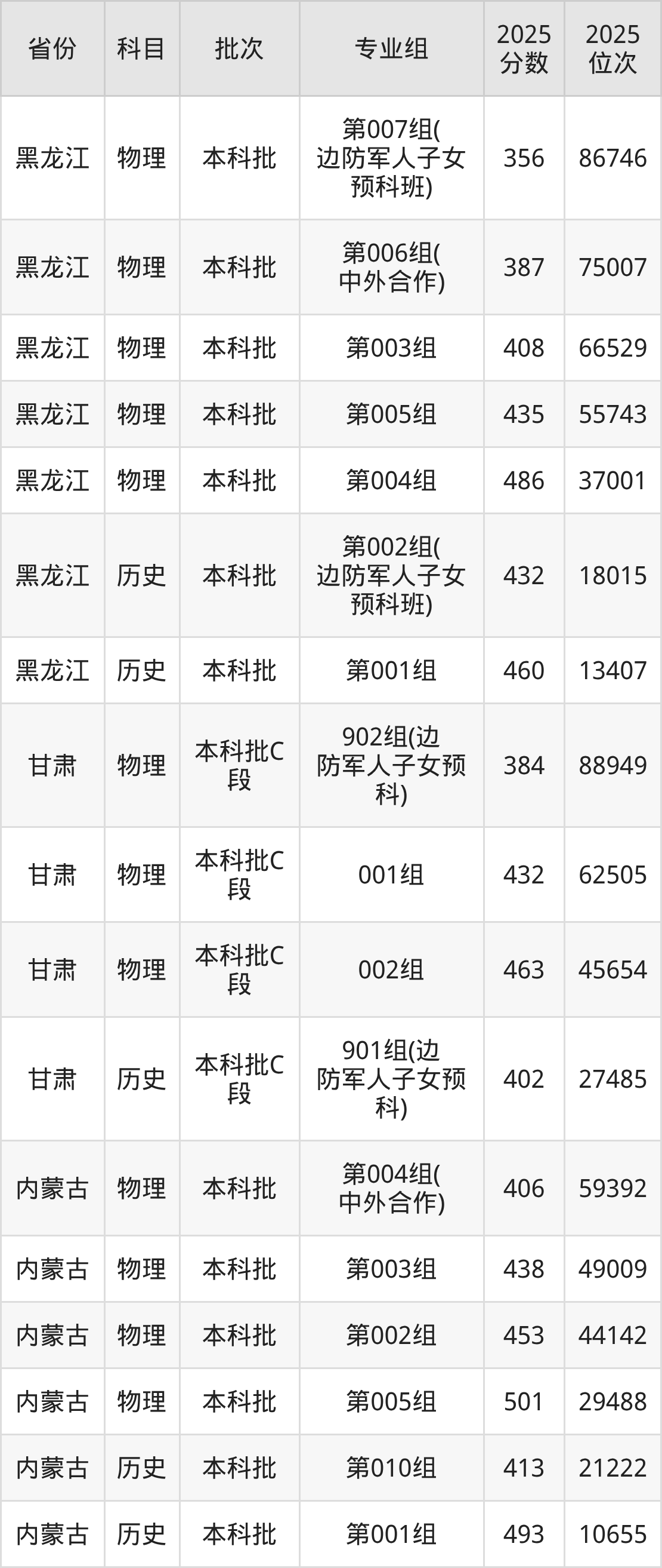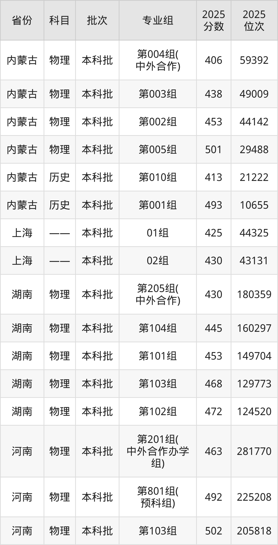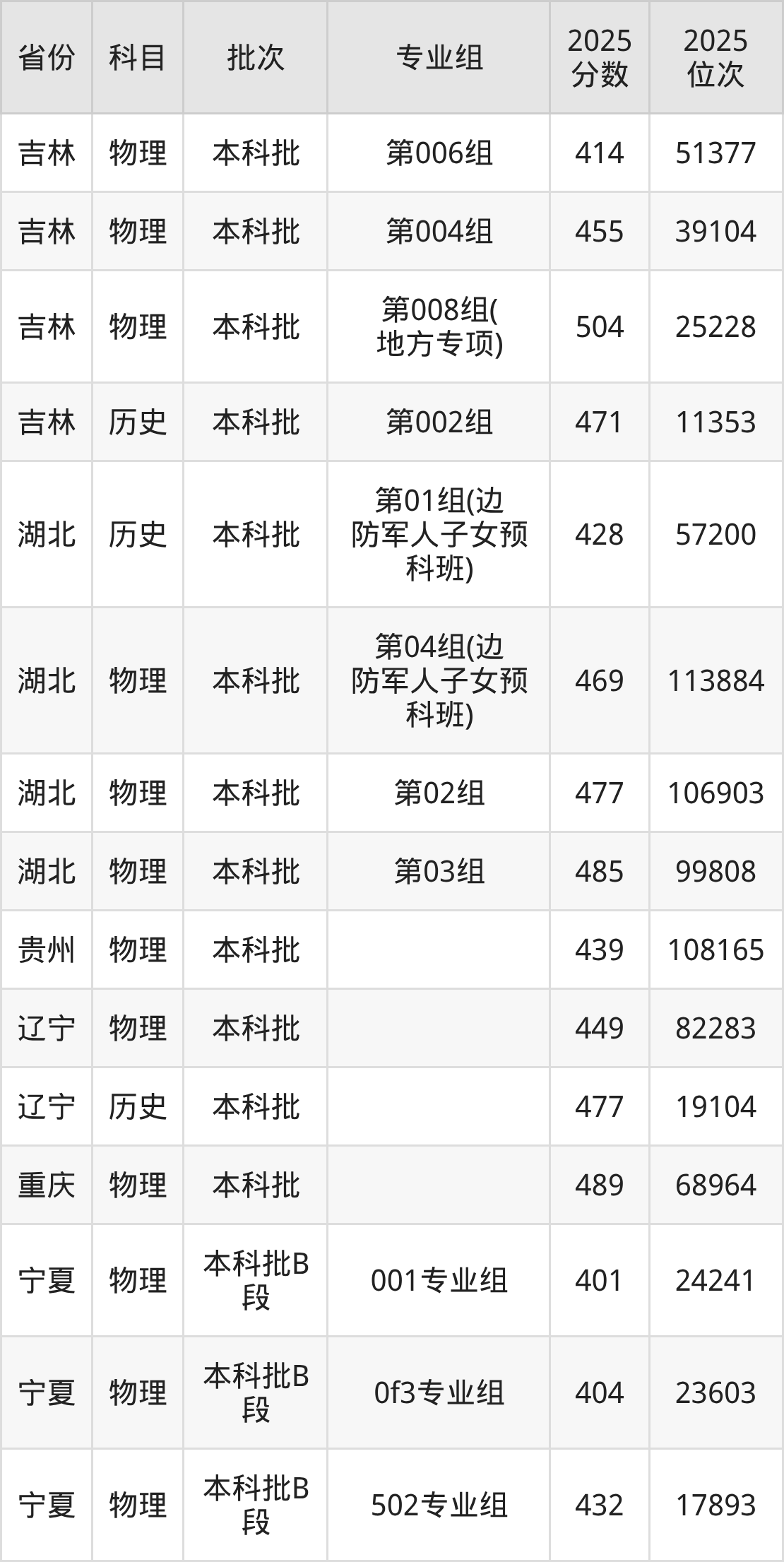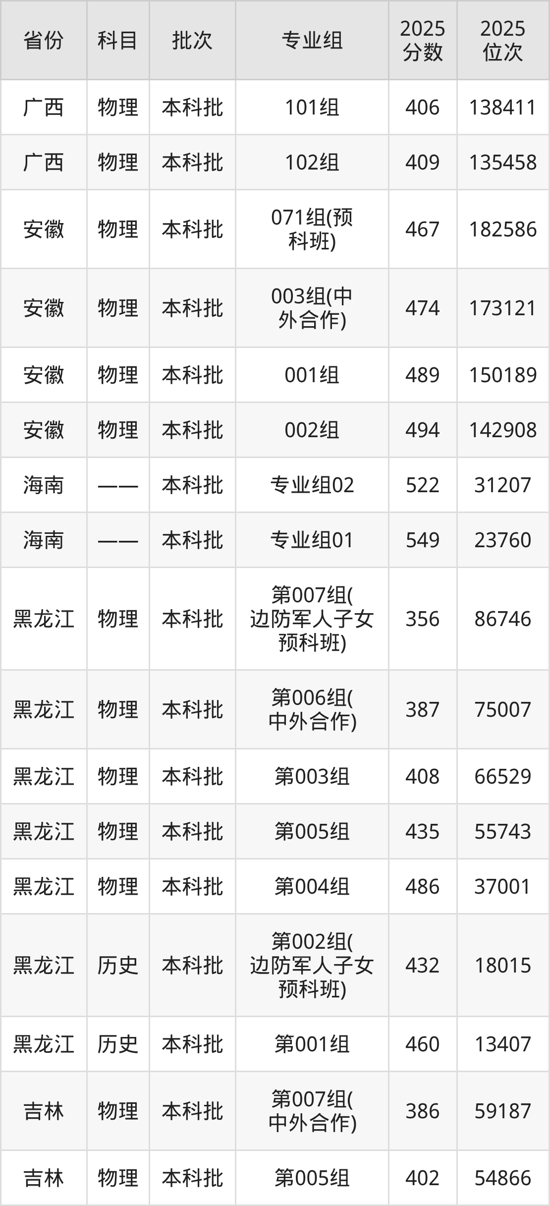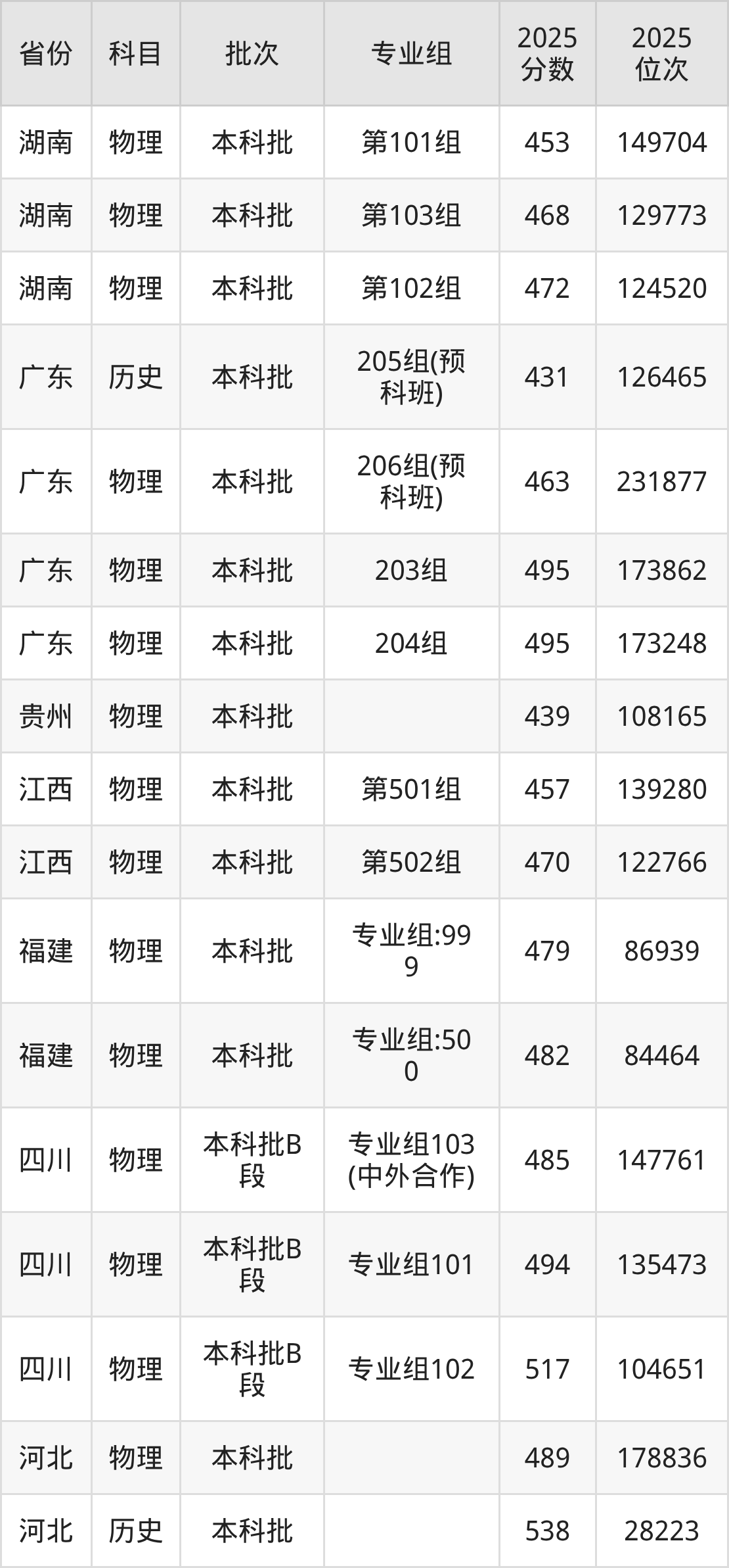 2025年在本科物理类进行招生,各专业组分数线详情如下: