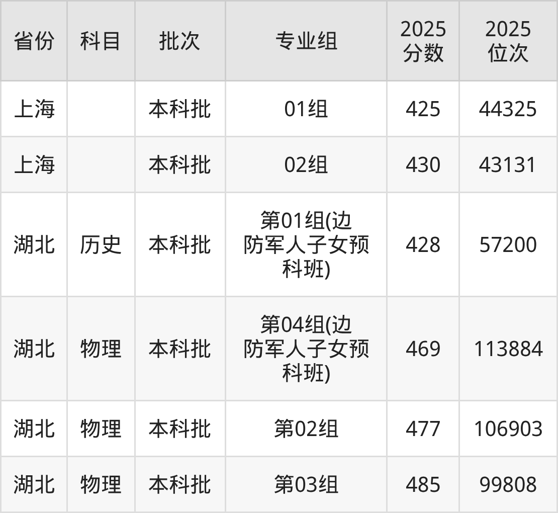 本科预科班(预科班):2025年投档录取最低分为457分。