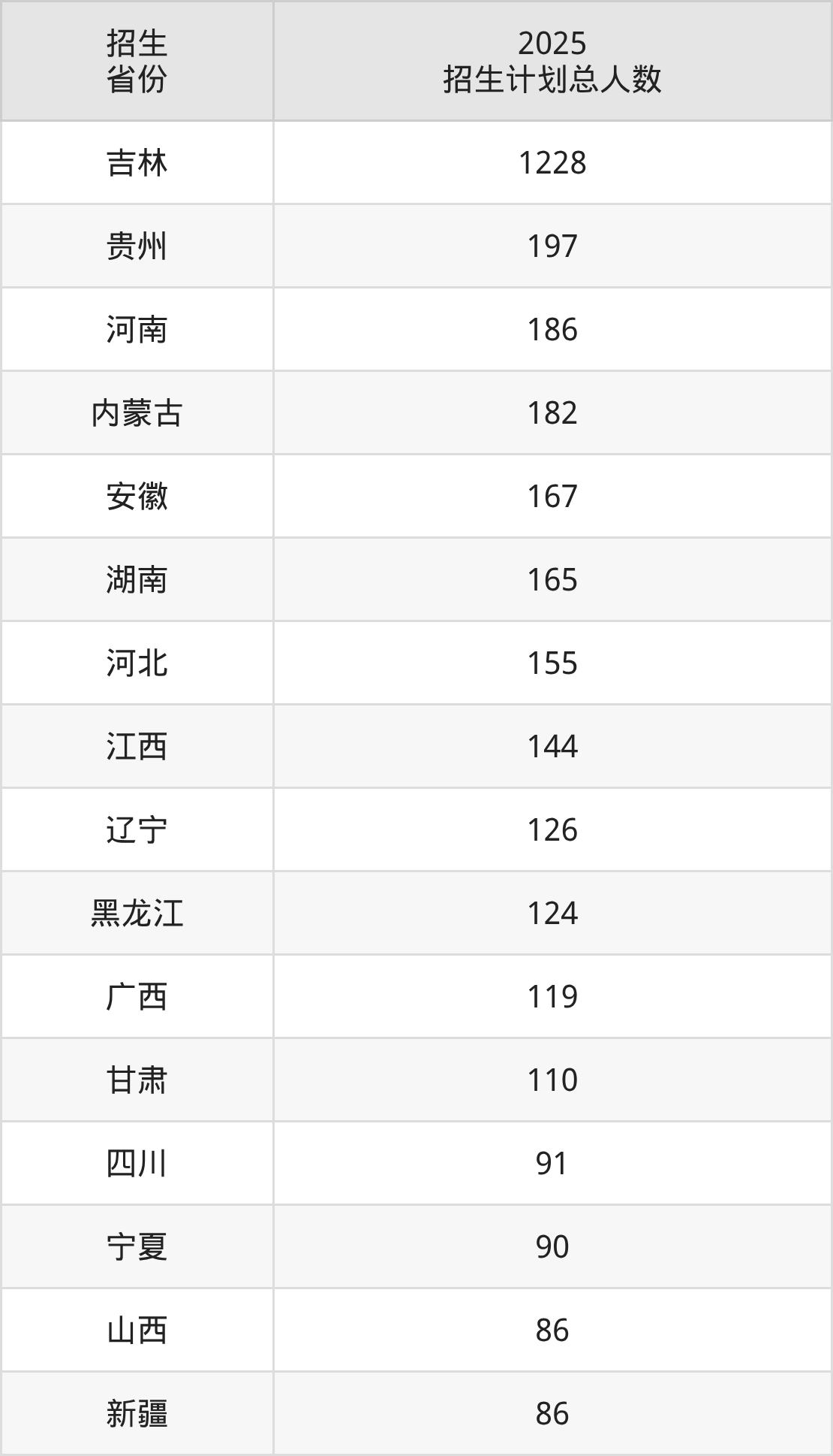 2025年长春工程学院面向全国28个省市开展本科招生;招生专业共43个,招生人数共3835人。2025年在吉林省招生计划总人数是1228人,其中,长春工程学院在吉林省招生人数最多的是机械设计制造及其自动化。长春工程学院在各省具体招生人数情况如下表。