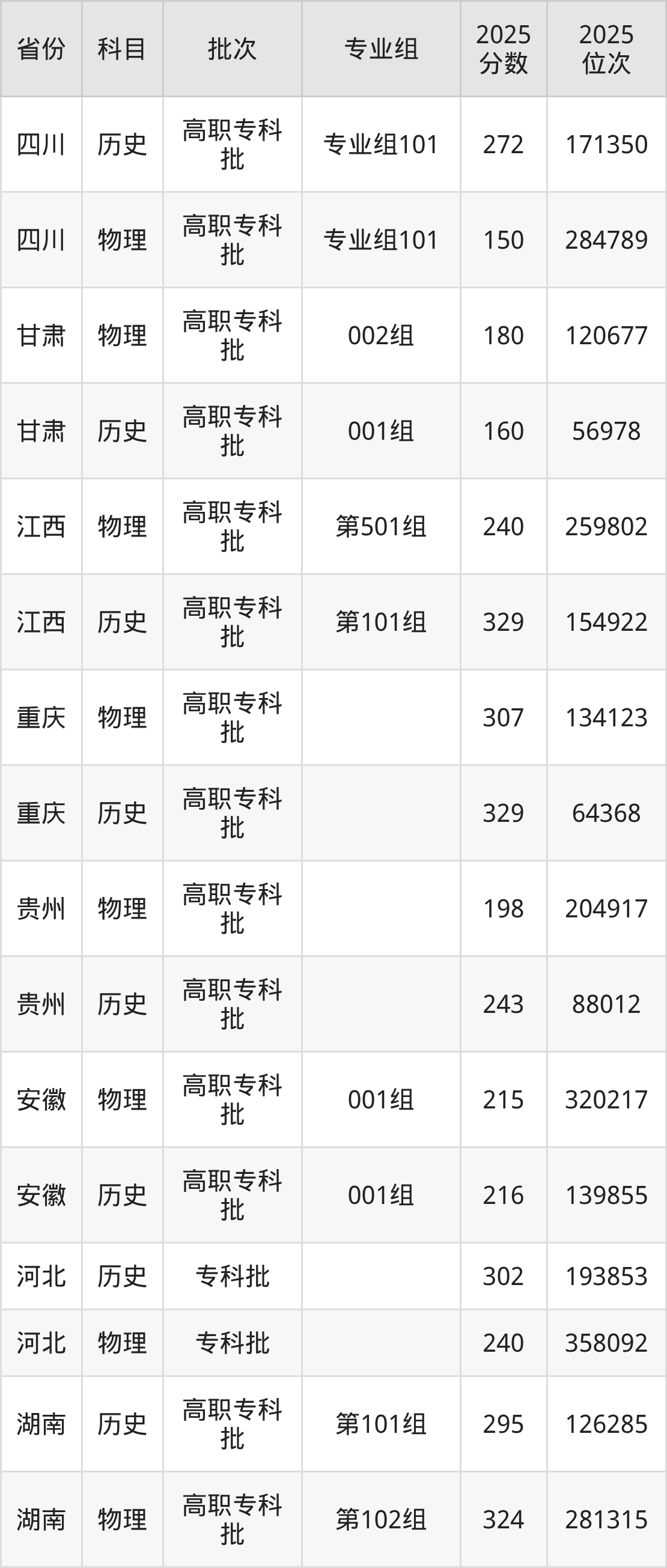 贵州盛华职业学院001组:2025年投档录取最低分为215分,录取最低位次为320217名。