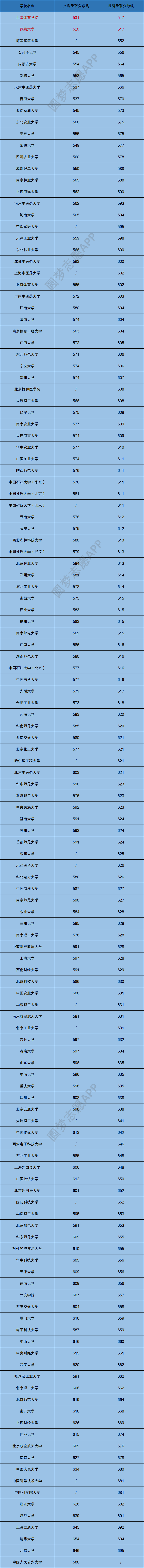 (2)理科录取分数最低的是西藏大学和上海体育学院,均为517分;