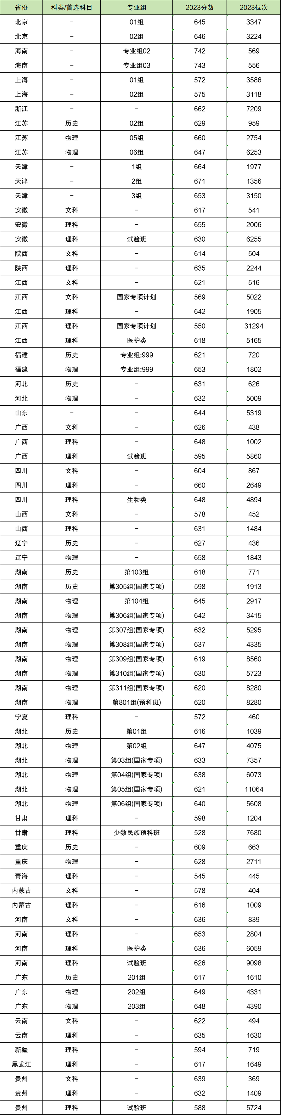 在3+3地区中,该校录取分数线最低的地区为上海,分别为572分(01组)和575分(02组)。然而,分数较低并不意味着位次低,因为东南大学在上海的录取位次分别为3586位(01组)和3118位(02组),与该校在北京的录取位次(01组3347位、02组3224位)相差无几。