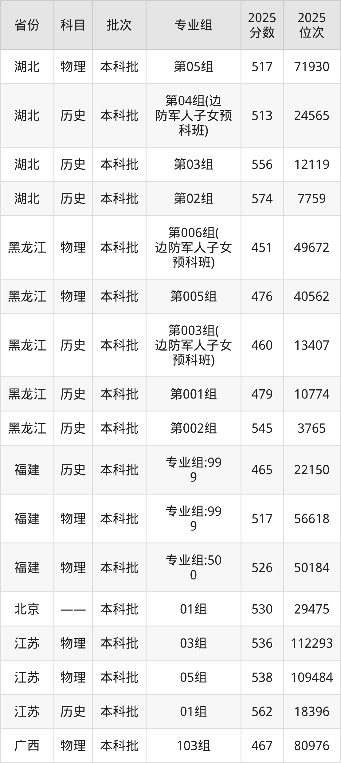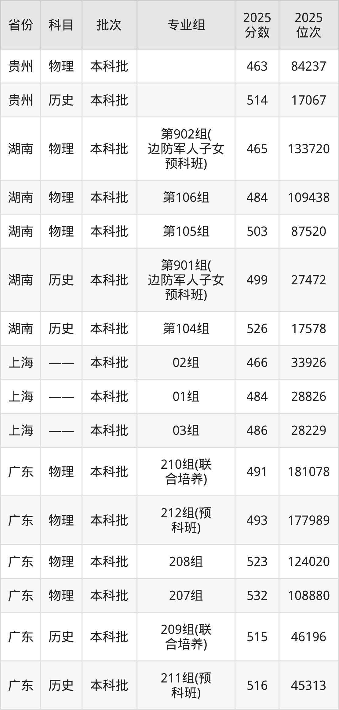 本科预科班(边防军人子女预科班):2025年投档录取最低分为499分。