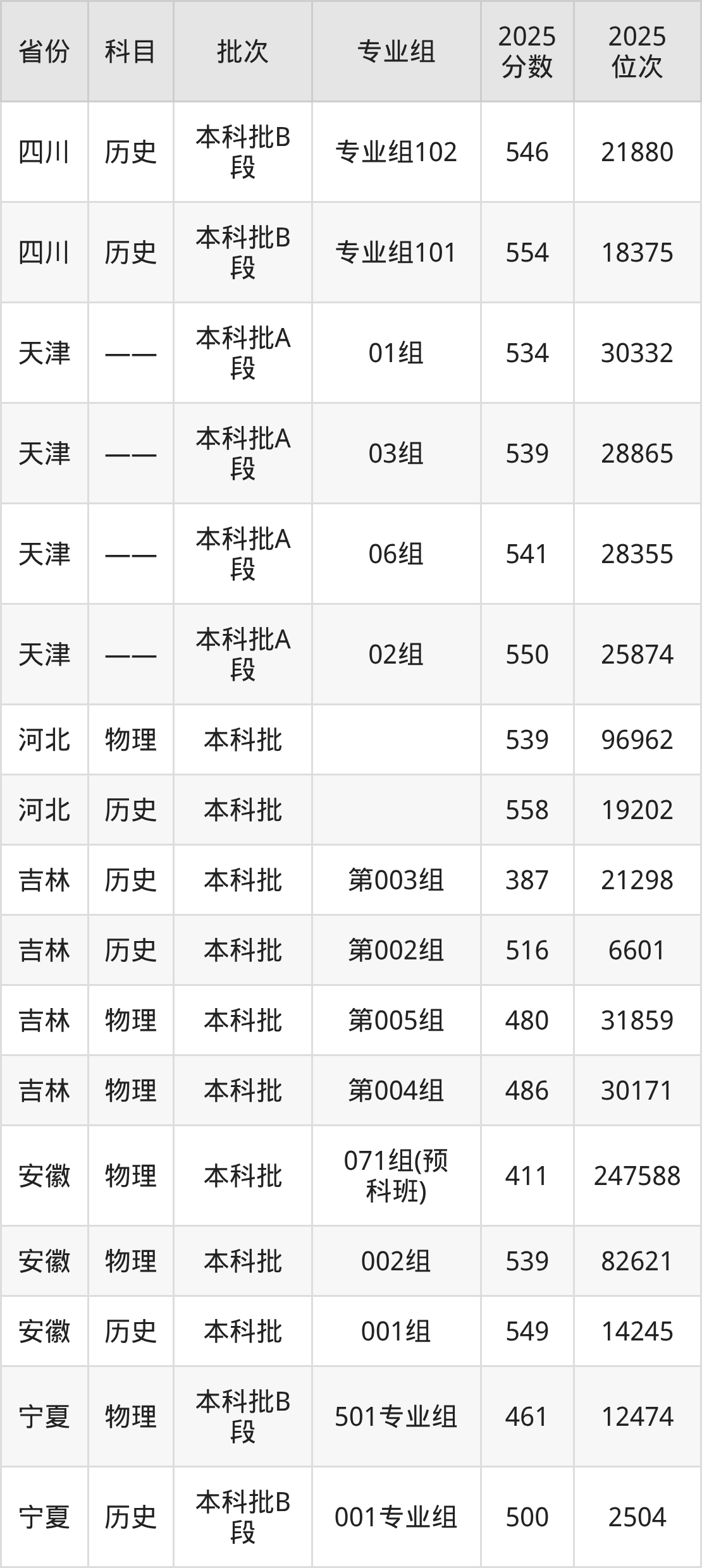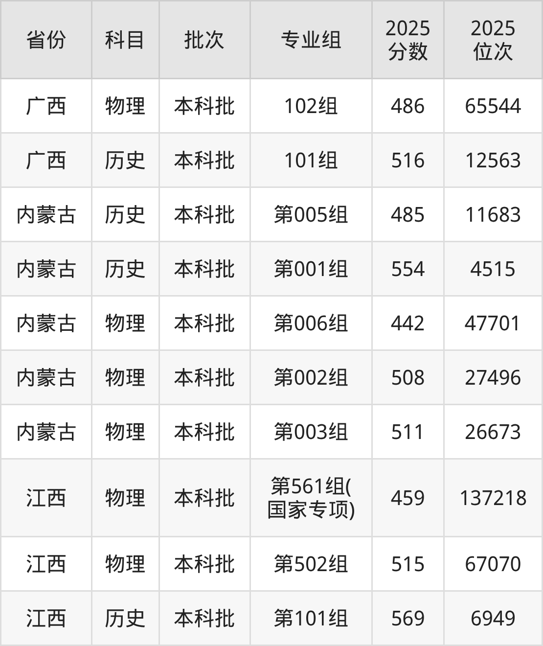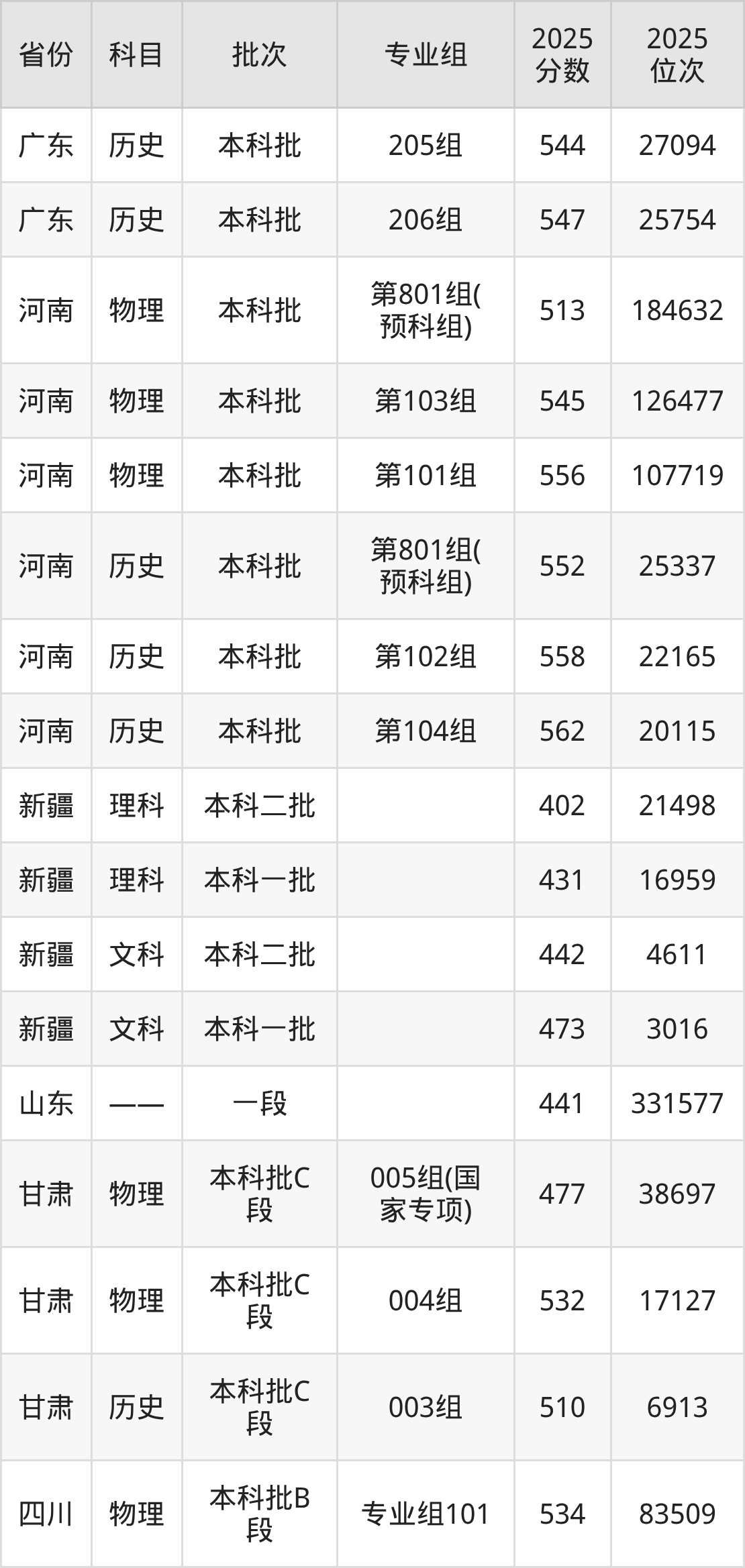 普通类本科物理类最低536分,本科历史类最低562分