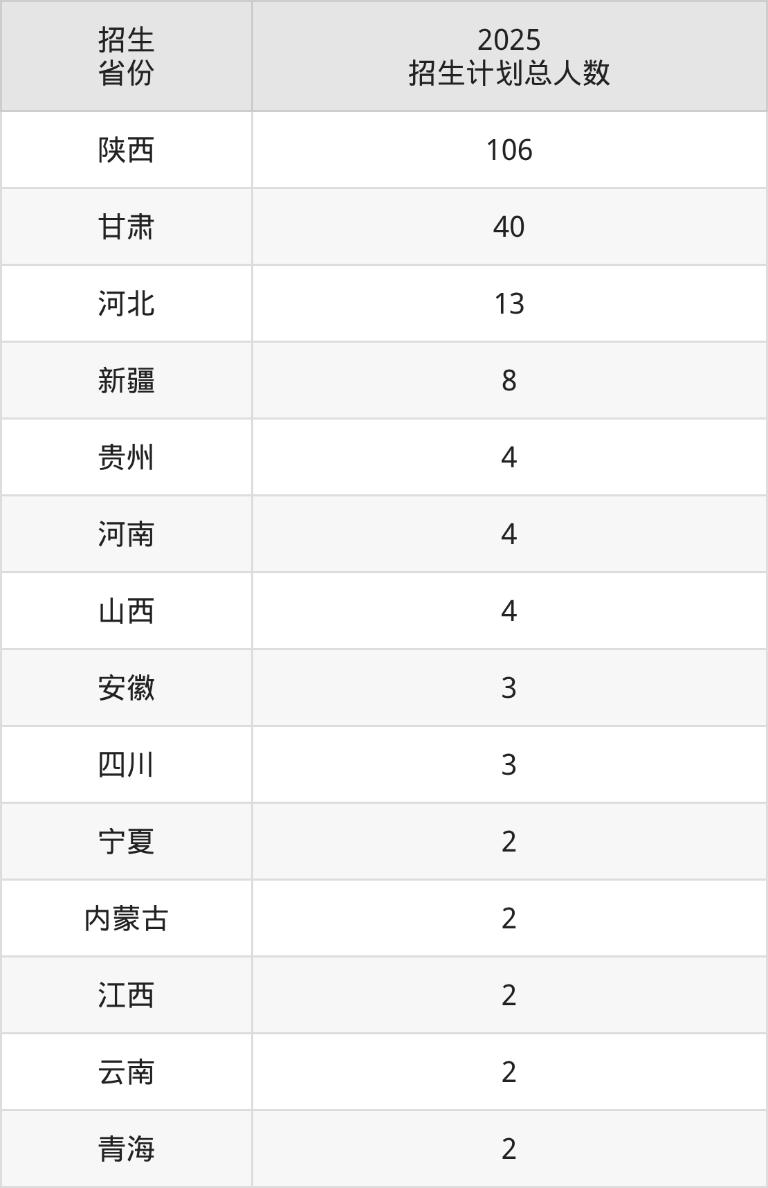 2025年陕西艺术职业学院面向全国14个省市开展专科招生;招生专业共14个,招生人数共195人。2025年在陕西省招生计划总人数是106人,其中,陕西艺术职业学院在陕西省招生人数最多的是学前教育。陕西艺术职业学院在各省具体招生人数情况如下表。
