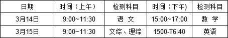 2024云南高三第一次统测将在3月14日-15日开考,关于本次5门考试科目的具体时间安排,如下: