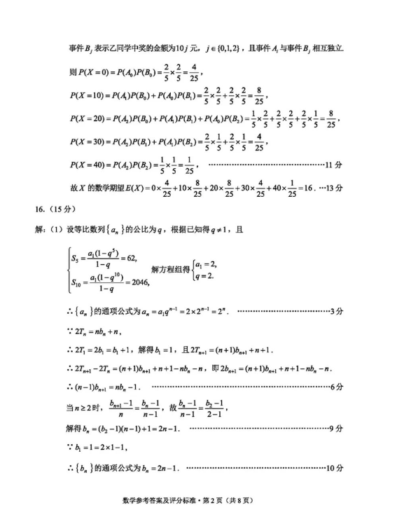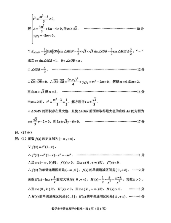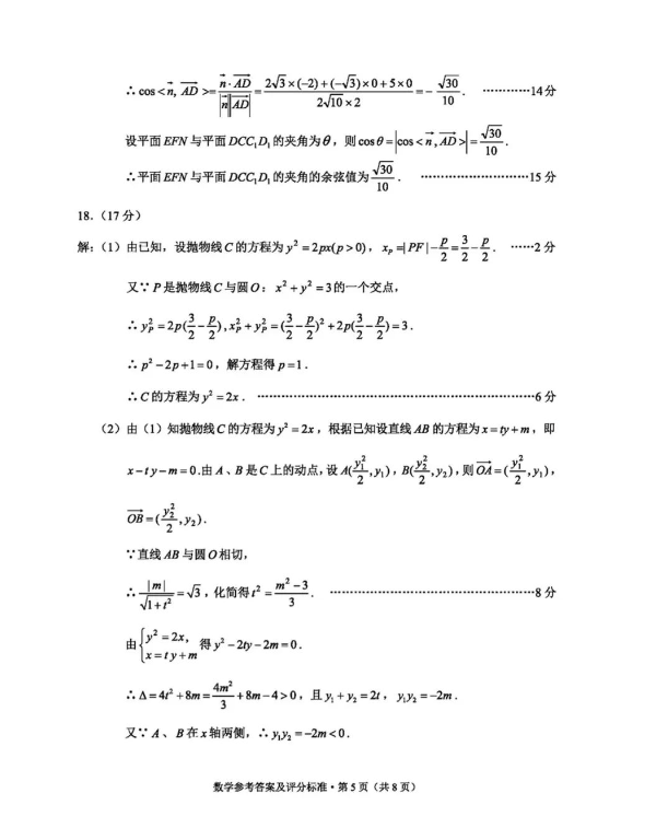 2.2024云南高三第一次统测数学试卷及答案解析
