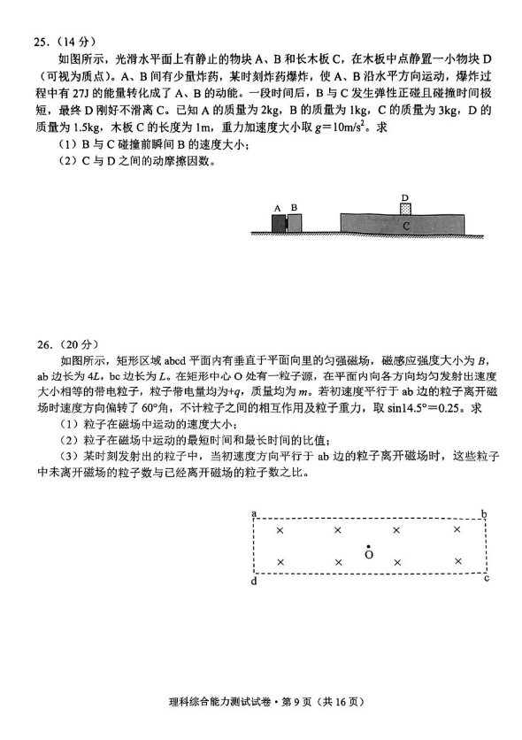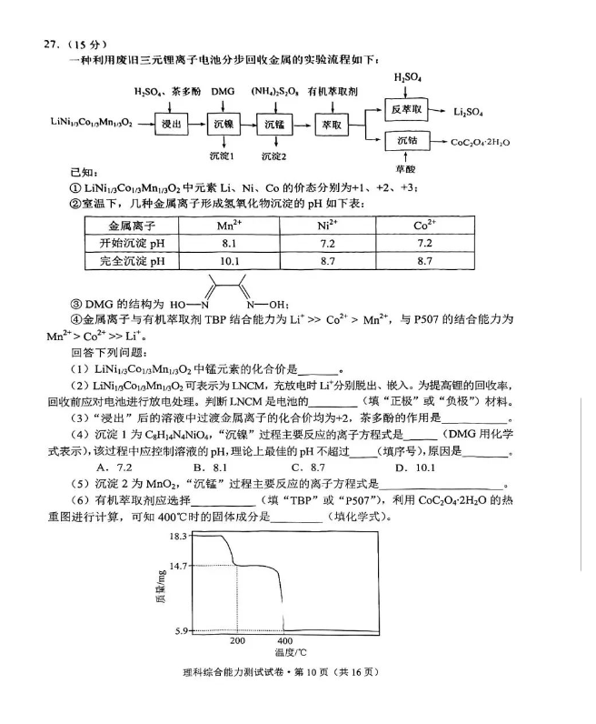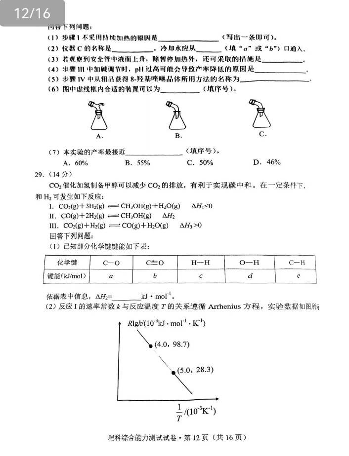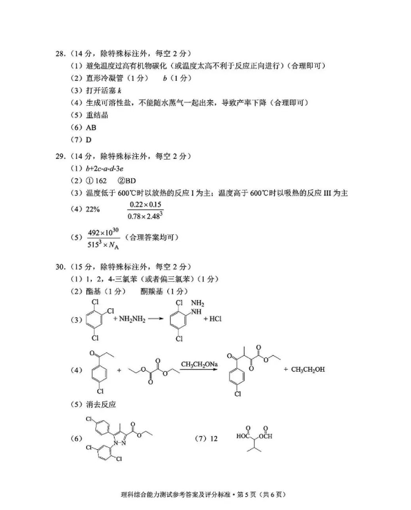 二、2024云南高三第一次统测试卷及各科答案汇总