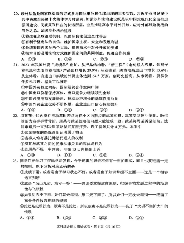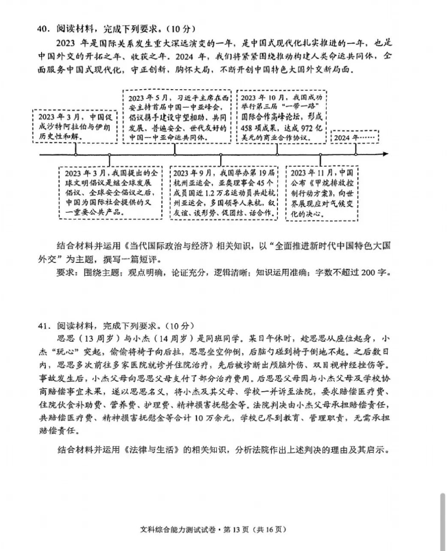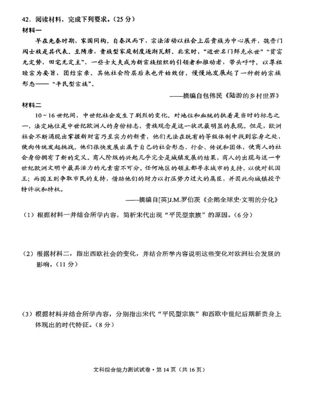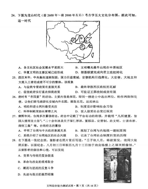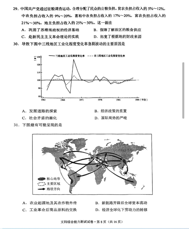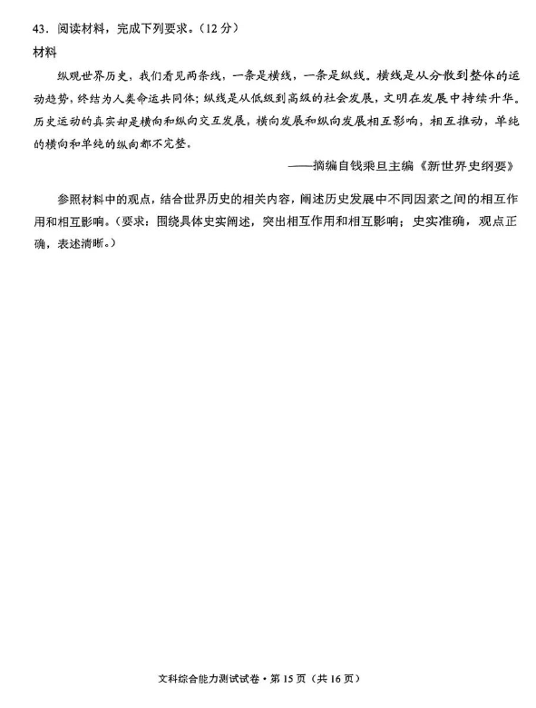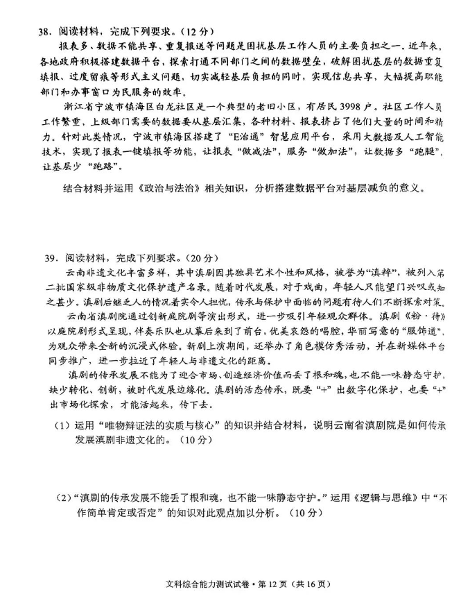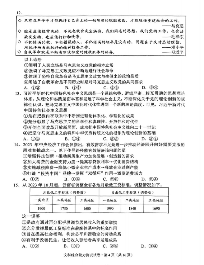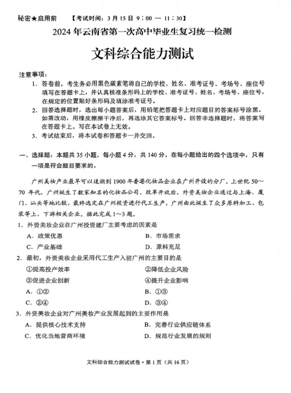 4.2024云南高三第一次统测文综试卷及答案解析
