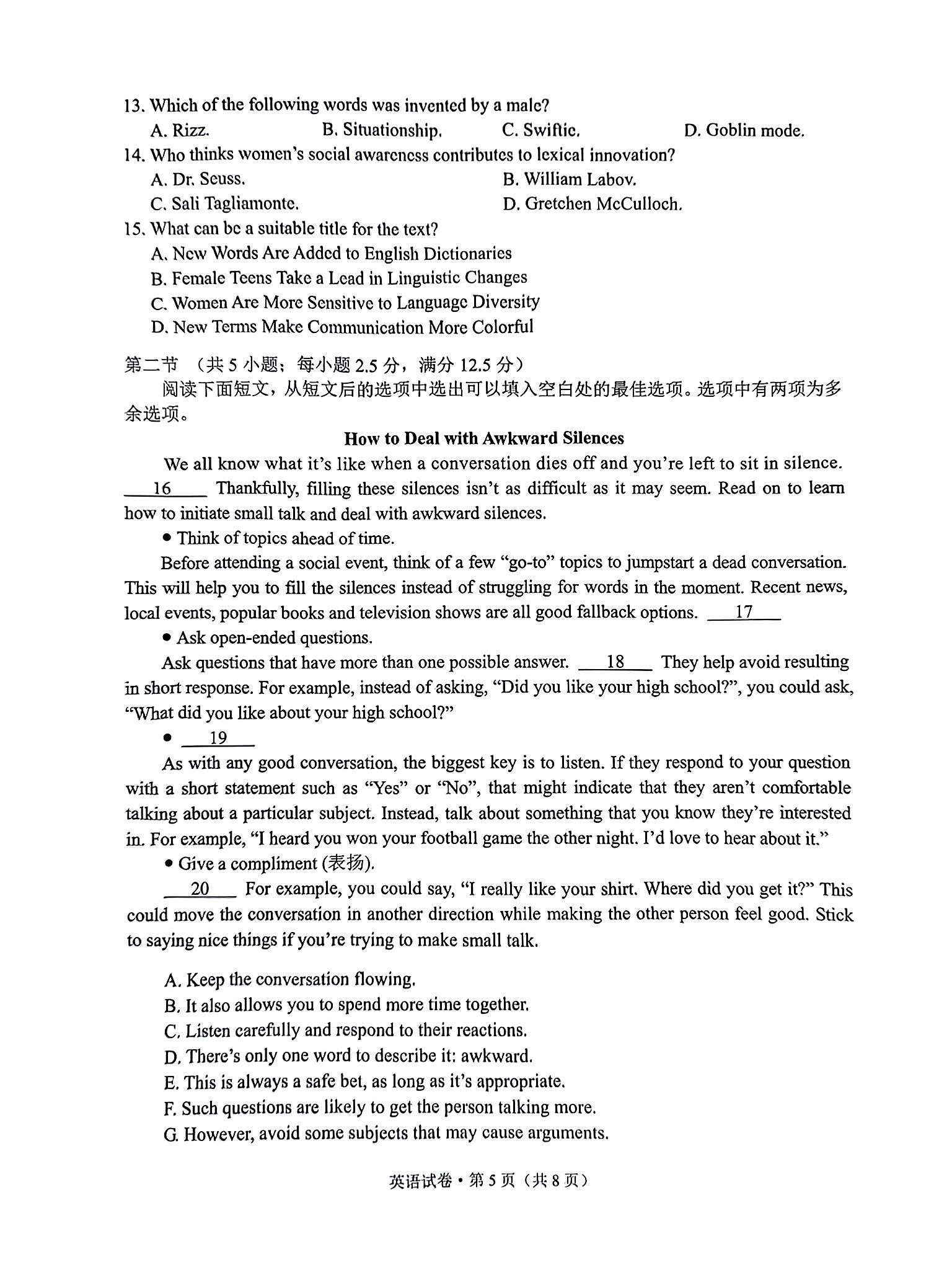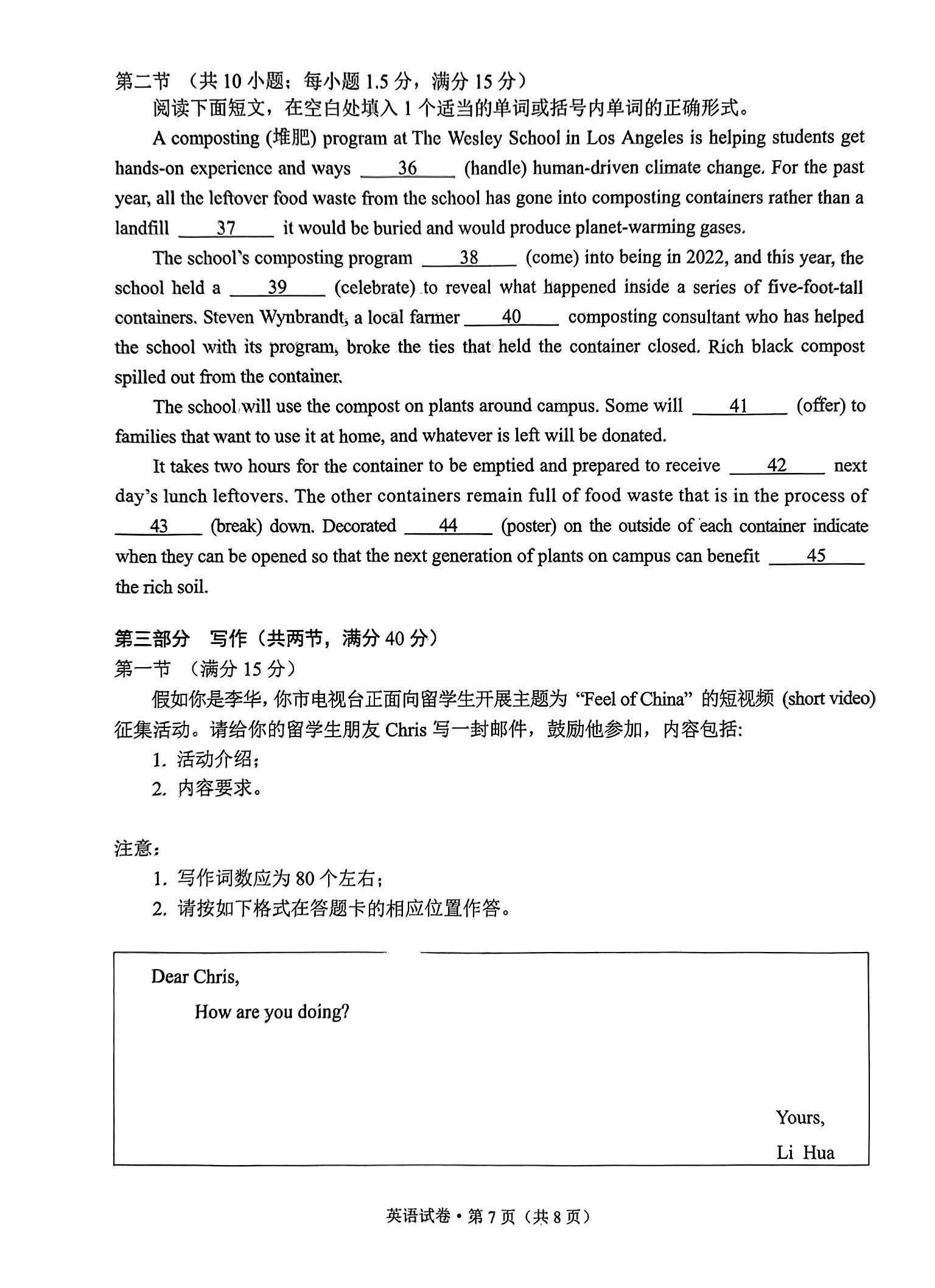 3.2024云南高三第一次统测英语试卷及答案解析