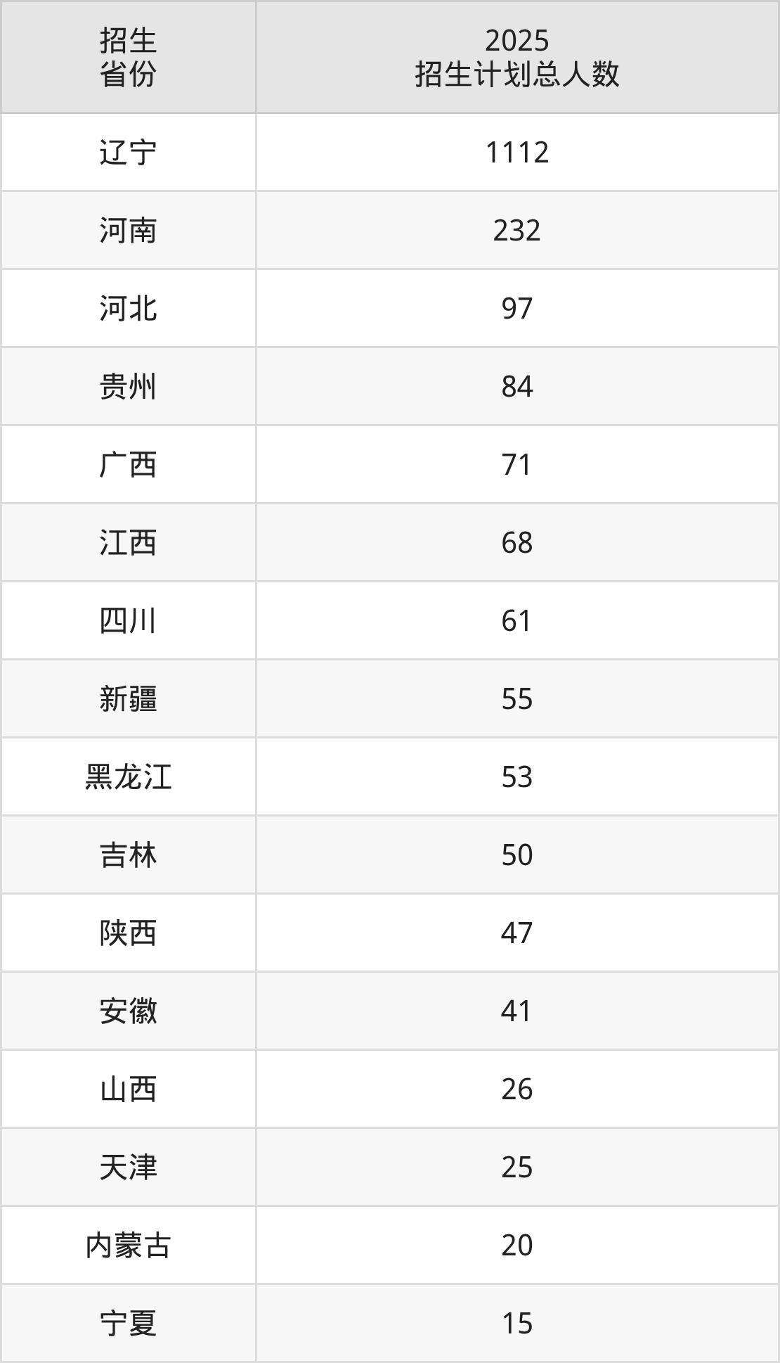 2025年沈阳科技学院面向全国19个省市开展本科招生;招生专业共21个,招生人数共2094人。2025年在辽宁省招生计划总人数是1112人,其中,沈阳科技学院在辽宁省招生人数最多的是计算机科学与技术。沈阳科技学院在各省具体招生人数情况如下表。