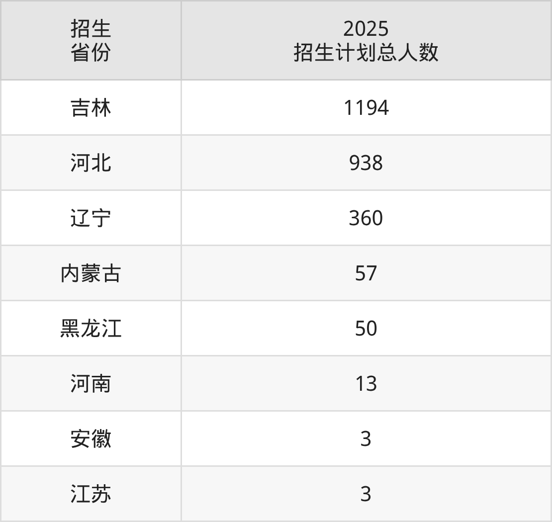 2025年长春东方职业学院面向全国8个省市开展专科招生;招生专业共17个,招生人数共2618人。2025年在吉林省招生计划总人数是1194人,其中,长春东方职业学院在吉林省招生人数最多的是护理。长春东方职业学院在各省具体招生人数情况如下表。