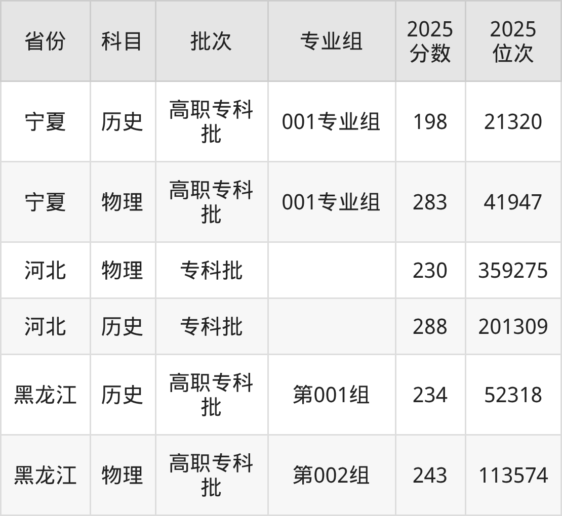 洛阳科技职业学院001专业组:2025年投档录取最低分为198分,录取最低位次为21320名。