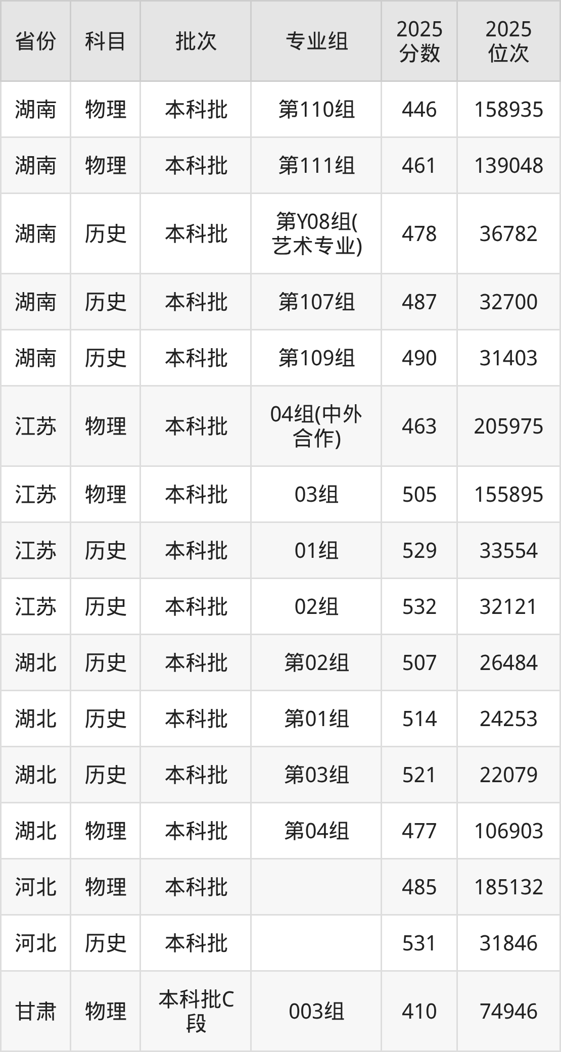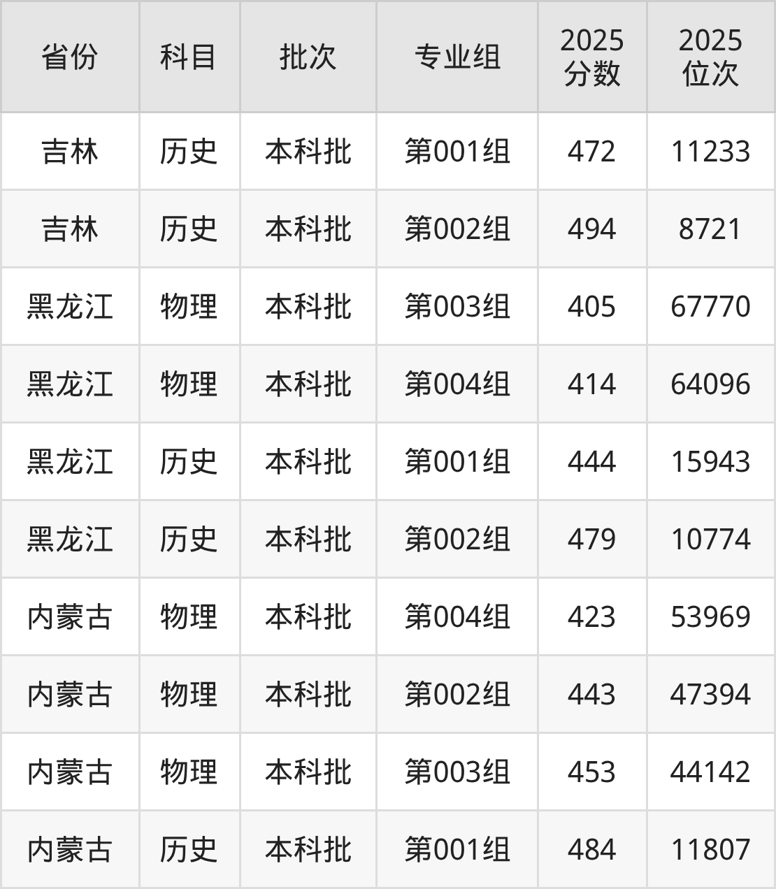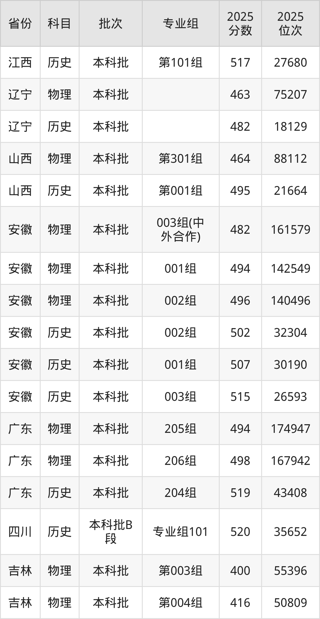 2025年在本科物理类进行招生,各专业组分数线详情如下: