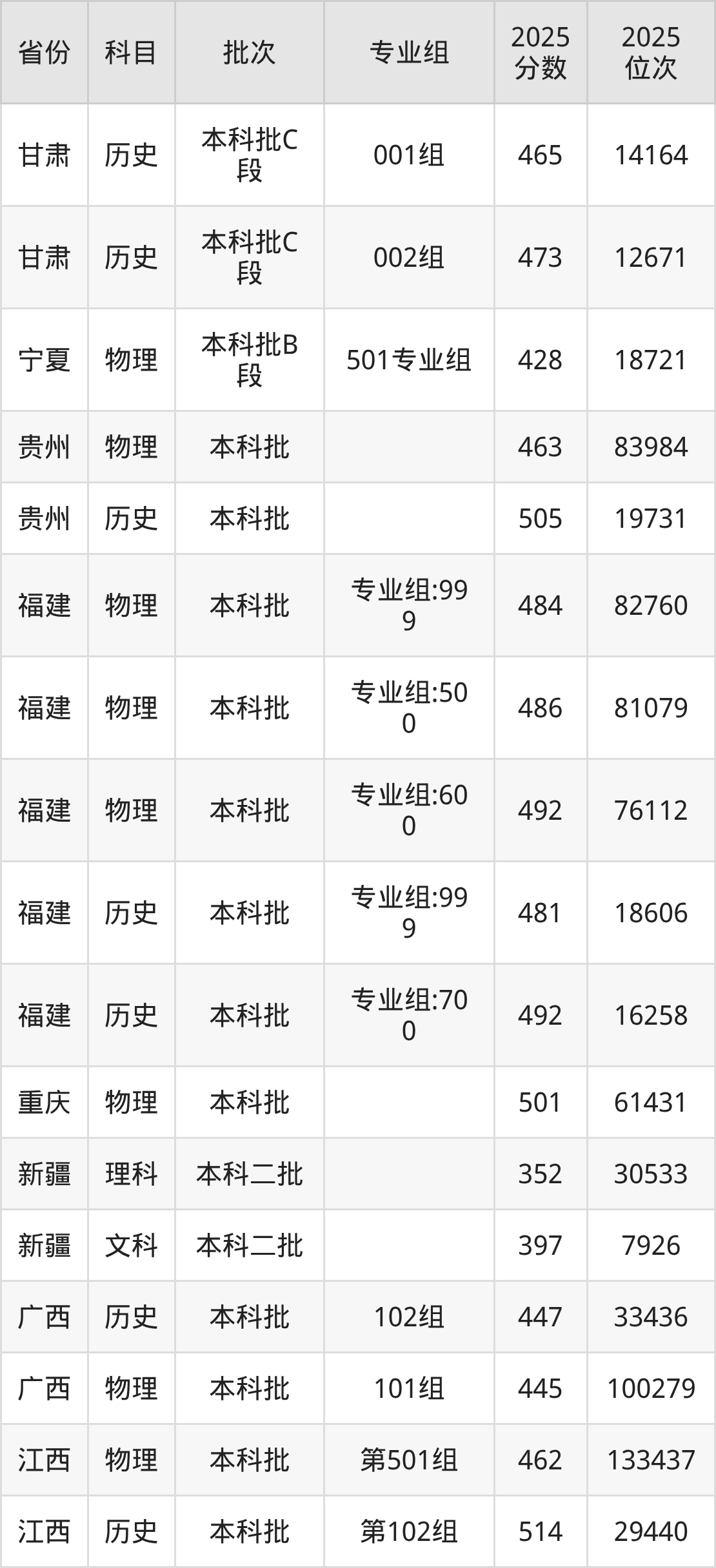 2025年投档录取最低分为463分,录取最低位次为83984名。