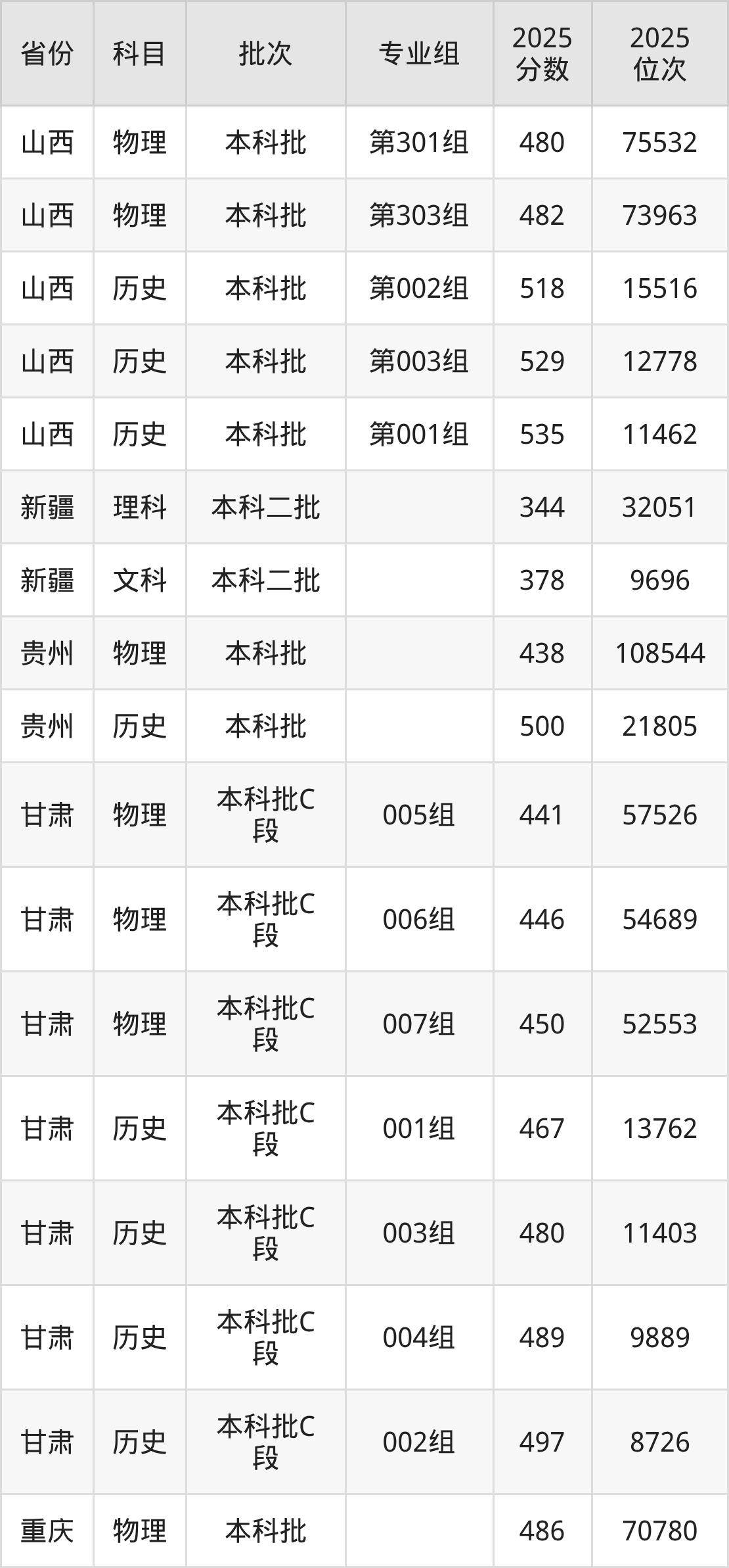2025年投档录取最低分为344分,录取最低位次为32051名。