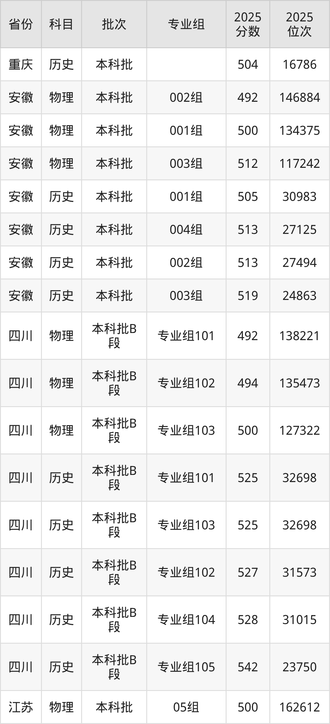 2025年投档录取最低分为485分,录取最低位次为17597名。
