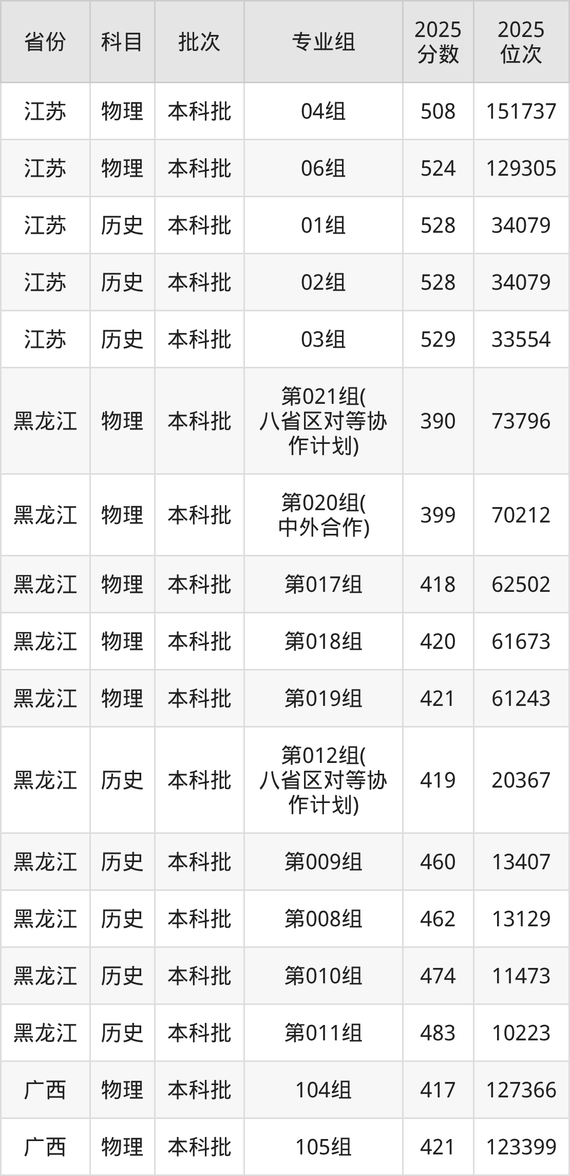 哈尔滨学院第010组:2025年投档录取最低分为481分,录取最低位次为35426名。