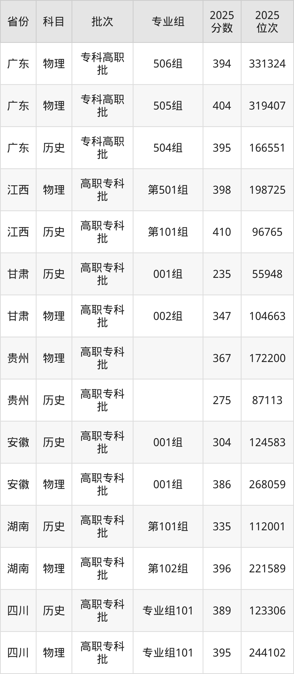 广西水利电力职业技术学院504组:2025年投档录取最低分为395分,录取最低位次为166551名。