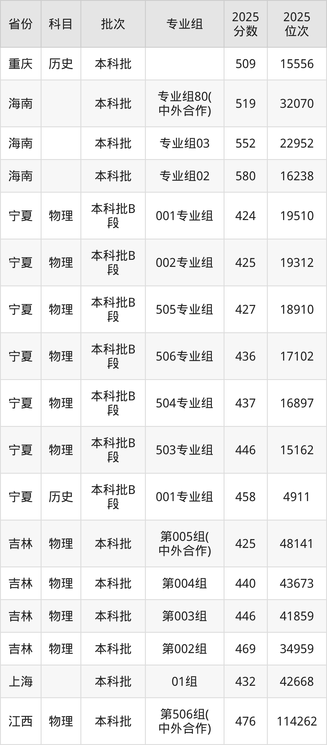 北部湾大学008组(中外合作办学):2025年投档录取最低分为505分,录取最低位次为126629名。